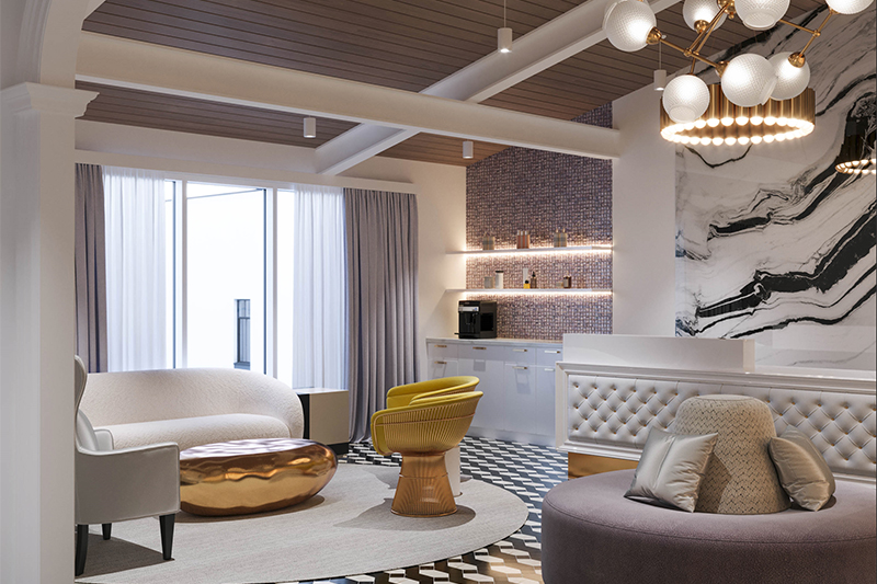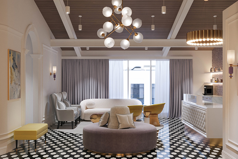 Through the intentional use of color, texture, and material, we introduced moments of softness, contrast, and subtle luminosity. The reception area, in particular, was designed to create an immediate sense of arrival—a space that feels elevated yet inviting, with carefully curated details that bring energy and personality without overwhelming the experience.