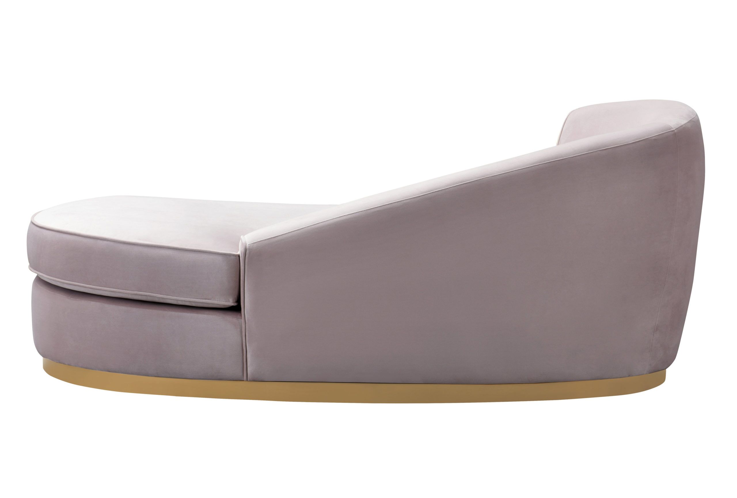 Featuring subtle curves and elegant style, the Adele chaise flawlessly disappears into itself allowing you to glide into seamless relaxation. Its sloping silhouette, neutral colors and matte gold base will blend into any decor. Available in plush slub grey and blush velvet options.