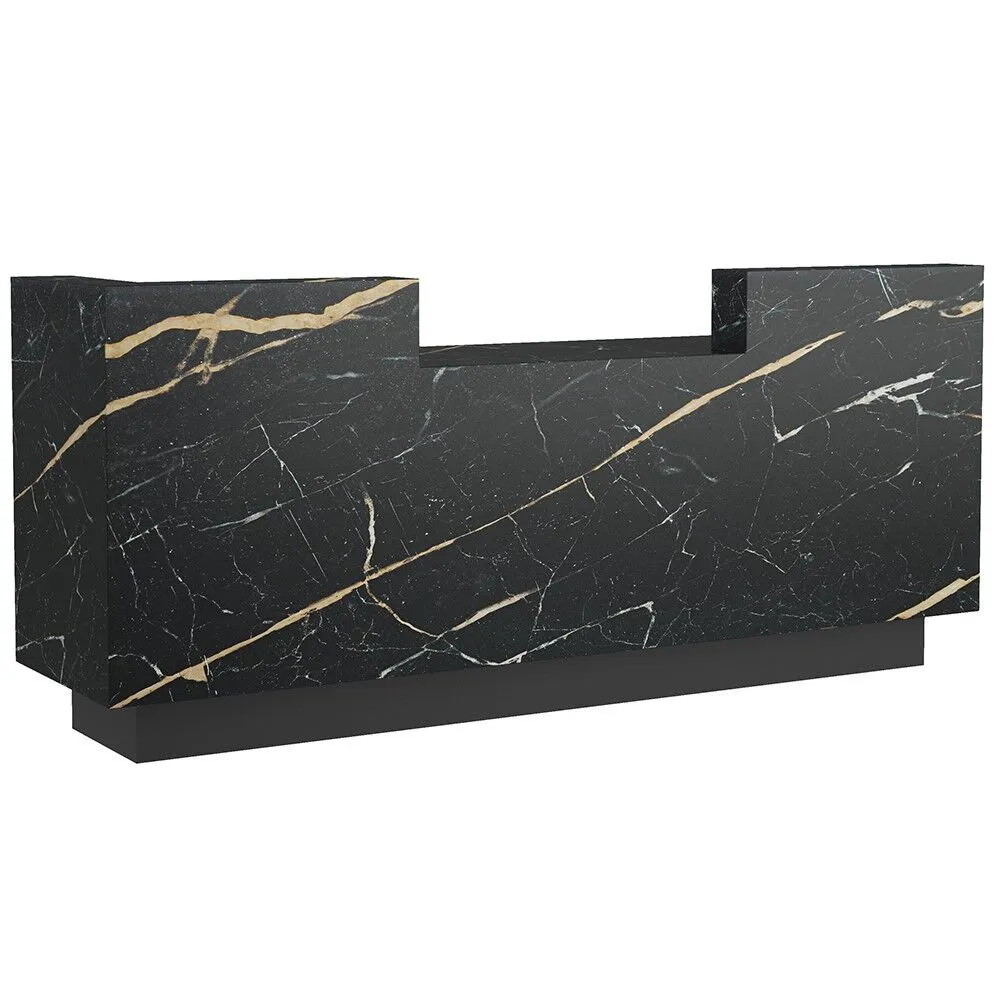 Amani Reception Desk is the luxury hospitality reception desk, where elegance meets functionality with it's striking black marble and modern clean lines. Size: 96"w x 24"d x 44" High ADA & Work Counter at 34"