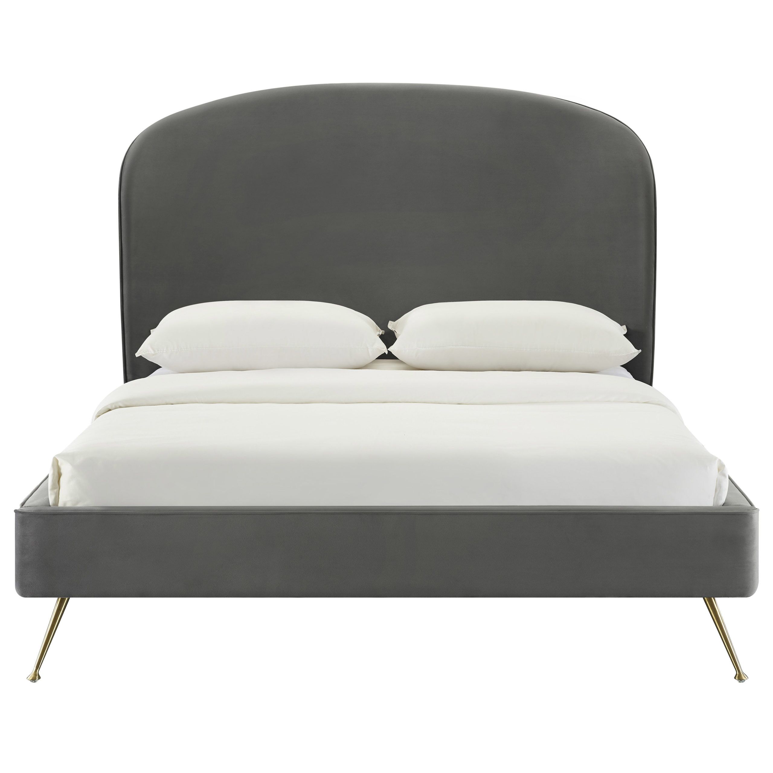 Modern glam is beautifully epitomized in the elegant curves of the Vivi bed. Boasting a dramatic silhouette and gold glamorous legs that pop against the textured velvet upholstery. Available in Queen and King sizes.