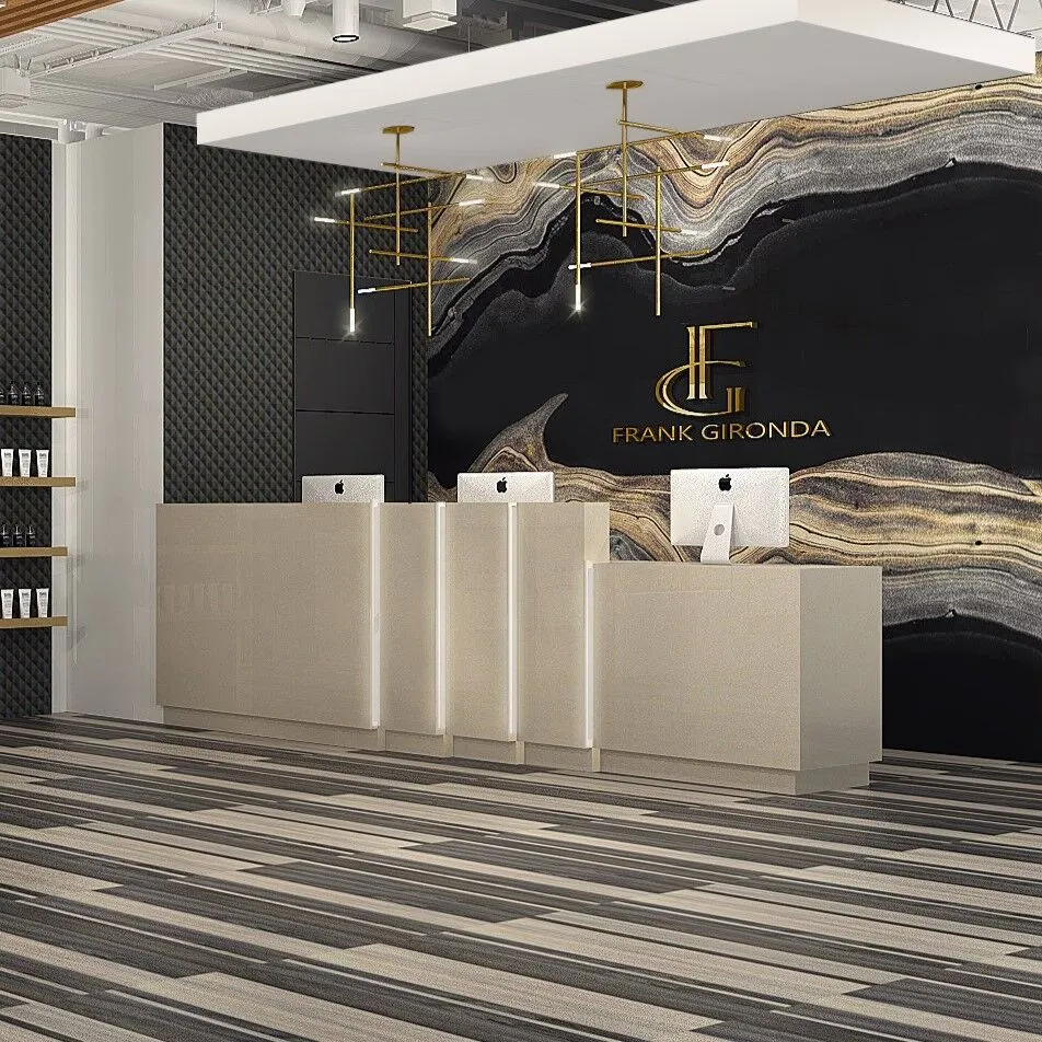 Auberge Reception Desk is the luxury hospitality reception desk, where elegance meets functionality with its modern stepped detail and integrated lighting. Crafted with the finest materials, this exquisite piece can be tailored to your exact specifications, offering a range of finishes and sizes to complement any interior aesthetic. Elevate your space with a statement of sophistication, welcoming guests with style and grace.