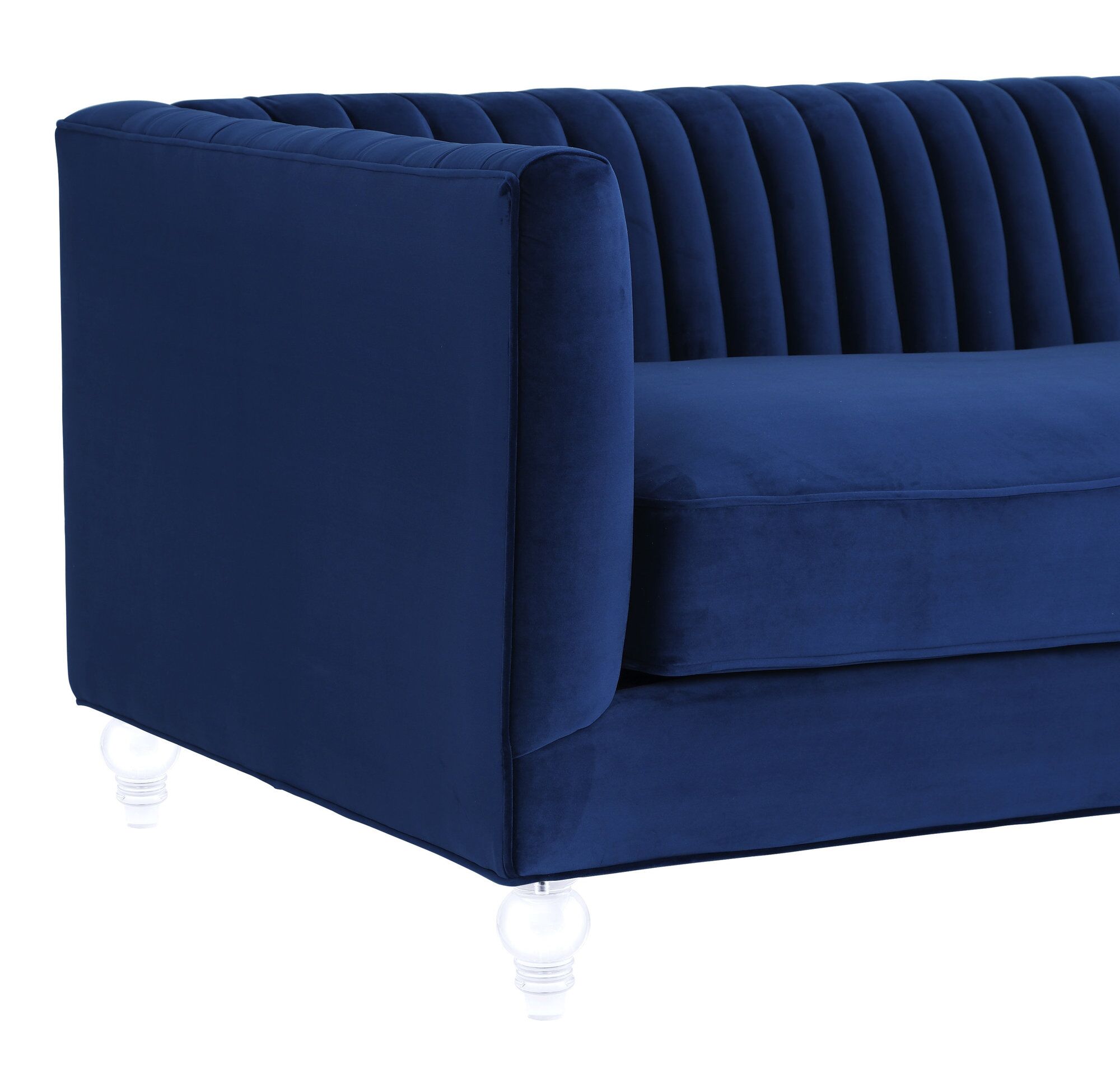 Your room will soar to new heights with the stylish Aviator sofa. Offering a contemporary flair with a touch of sophistication, this velvet sofa is unique yet comfortable; from the perfect pleats to the Lucite legs and rich color options.