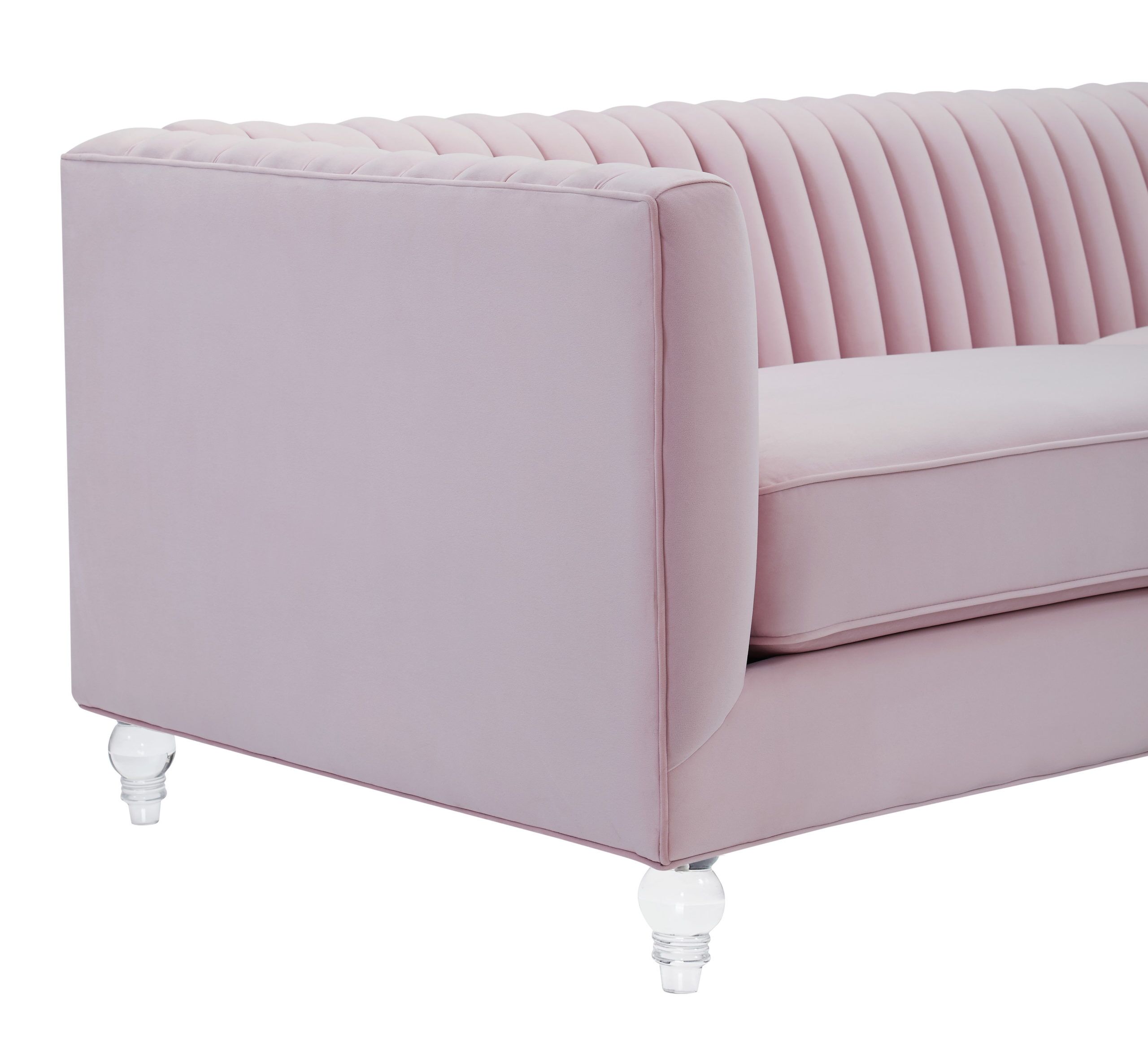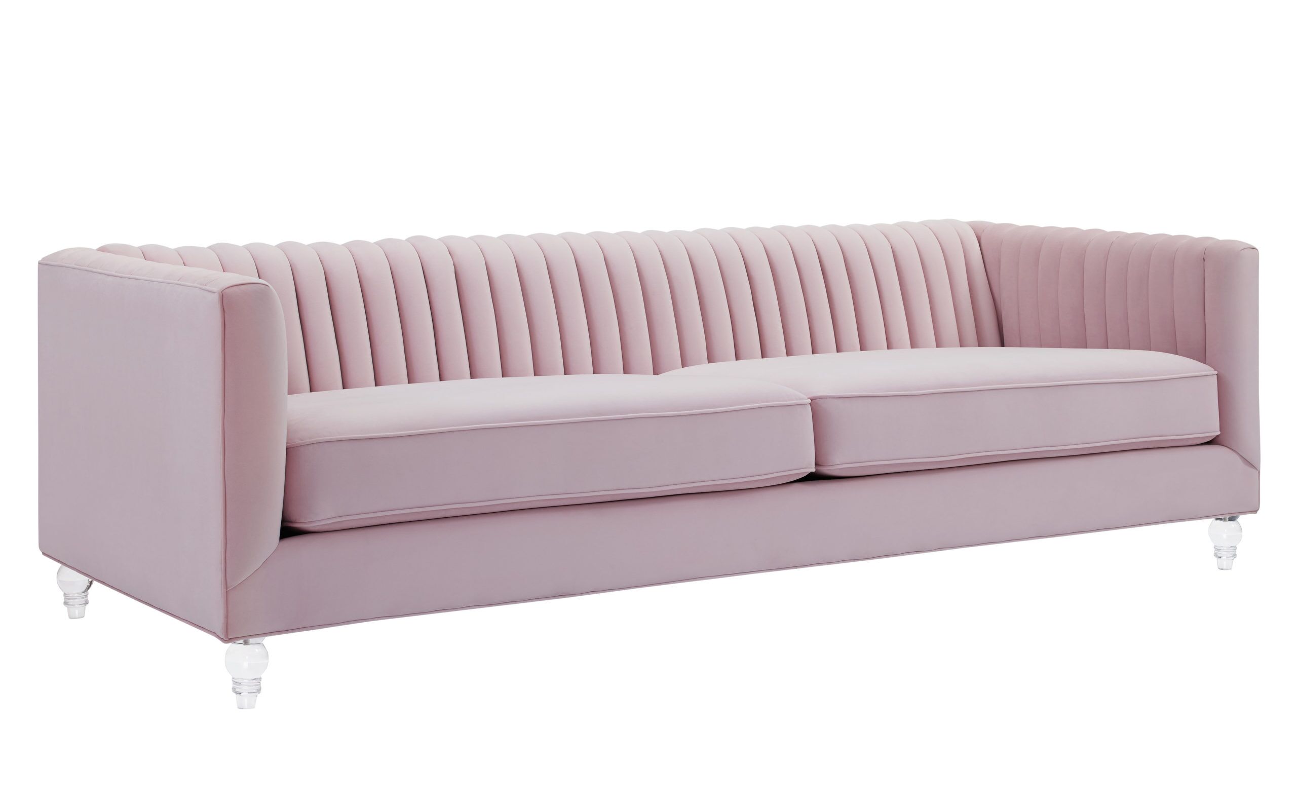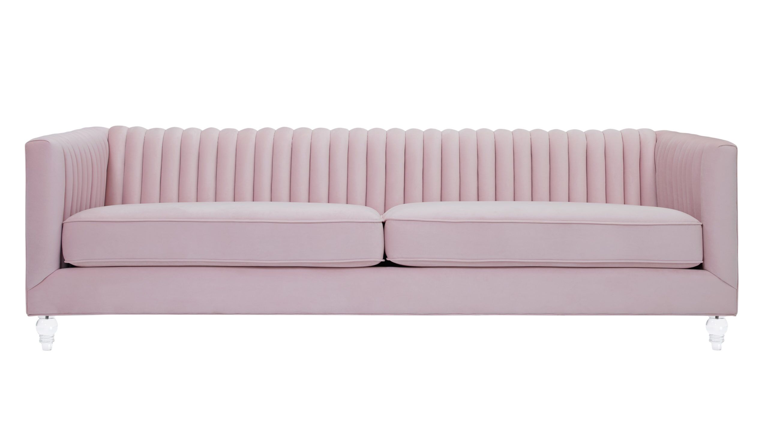 Your room will soar to new heights with the stylish Aviator sofa. Offering a contemporary flair with a touch of sophistication, this velvet sofa is unique yet comfortable; from the perfect pleats to the Lucite legs and rich color options.