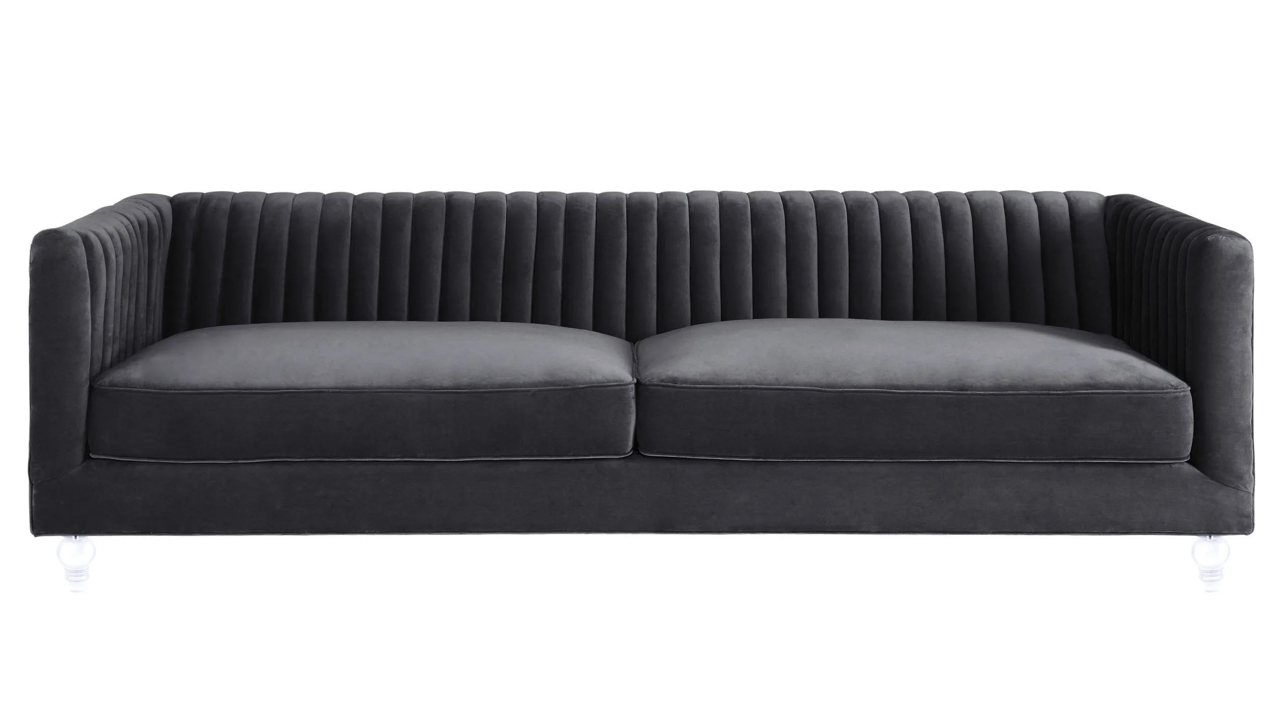 Your room will soar to new heights with the stylish Aviator sofa. Offering a contemporary flair with a touch of sophistication, this velvet sofa is unique yet comfortable; from the perfect pleats to the Lucite legs and rich color options.
