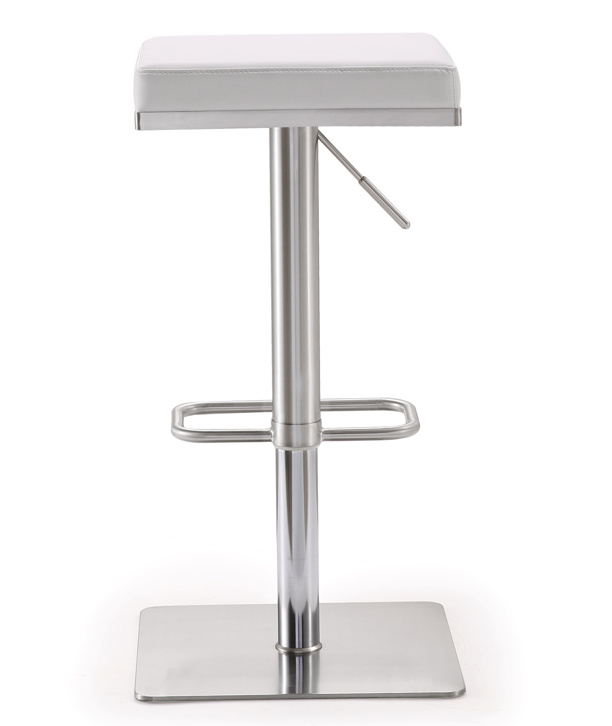 Furnish your space in contemporary style with the Bari . The solid stainless steel frame provides a sturdy base, while the plush seat and footrest ensure maximum comfort. The combination of angles and gentle curves gives this stool an eye-catching appearance, while the neutral color allows it to match well with any décor.