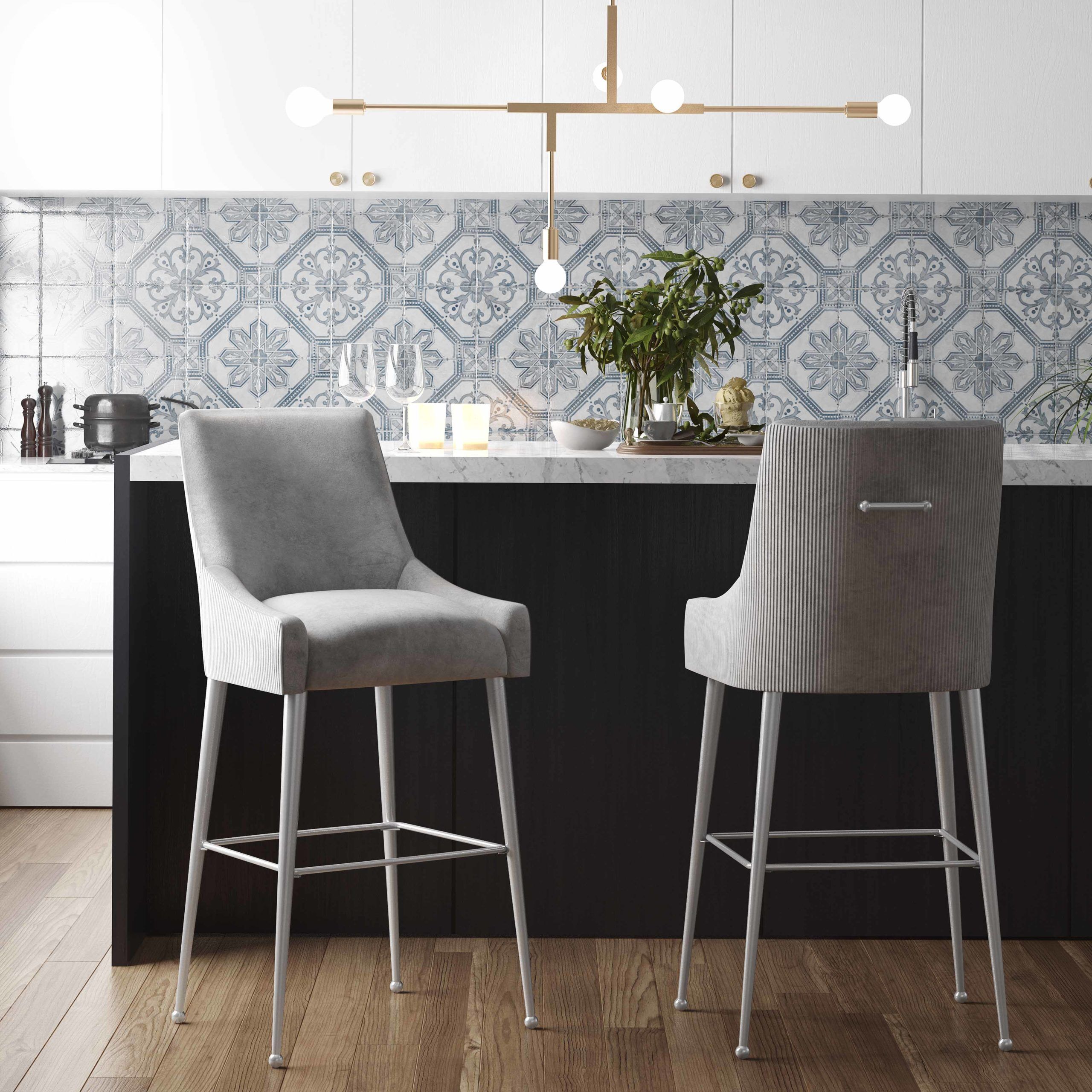 Sit pretty in this sumptuous yet durable velvet Stool. The Beatrix dazzles in counter and bar heights. Available in soft velvet with fab stainless steel legs and a matching handle on the back. Prop it into any room for a luxe, glamour effect.