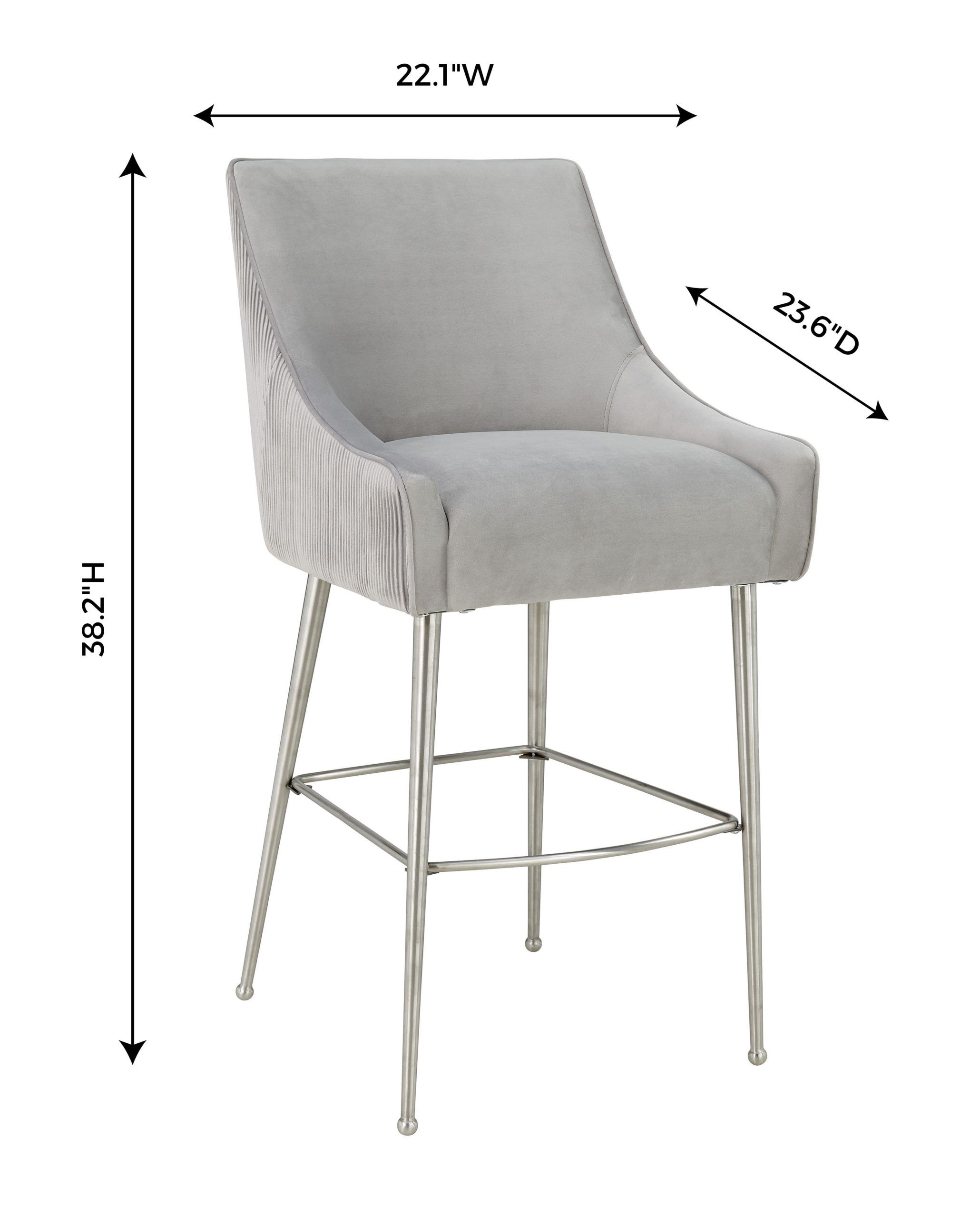 Sit pretty in this sumptuous yet durable velvet Stool. The Bea dazzles in counter and bar heights. Available in soft velvet with fab stainless steel legs and a matching handle on the back. Prop it into any room for a luxe, glamour effect.