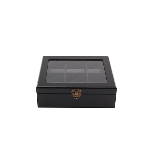 Surprise your guests with an elegant Beechwood Tea Chest from Bredemeijer. In all black with a window & 6 compartment design, it will fit in seamlessly with any decor. Constructed from beechwood Hand WashDimension L x W x H (height without lid):8.5 X 7.25 X 3