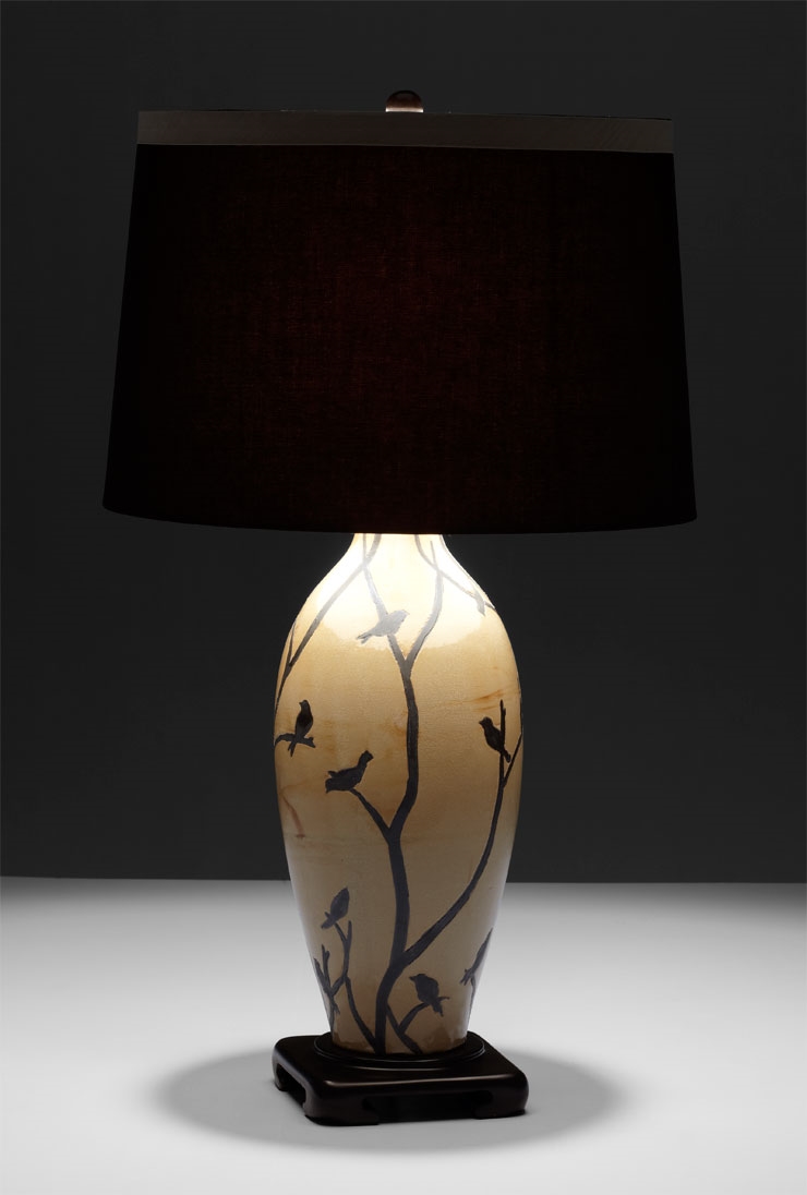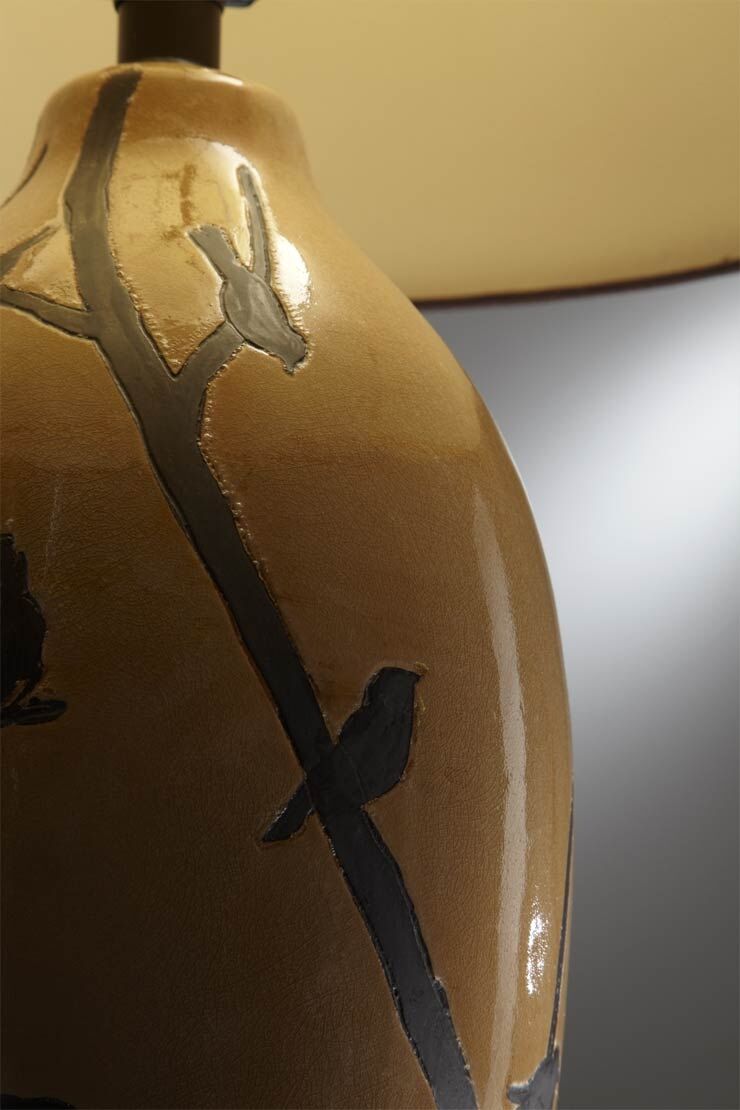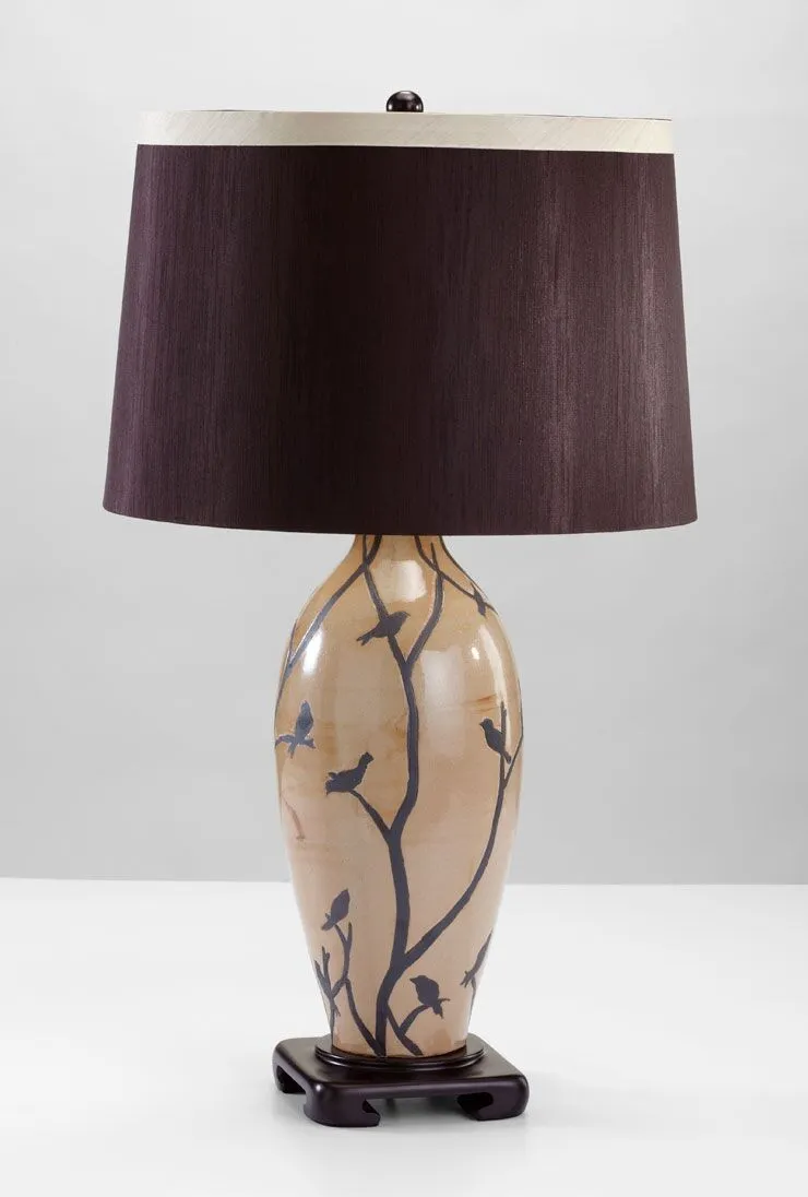 Ceramic / Brown Faux Silk Shade / Gold Lining