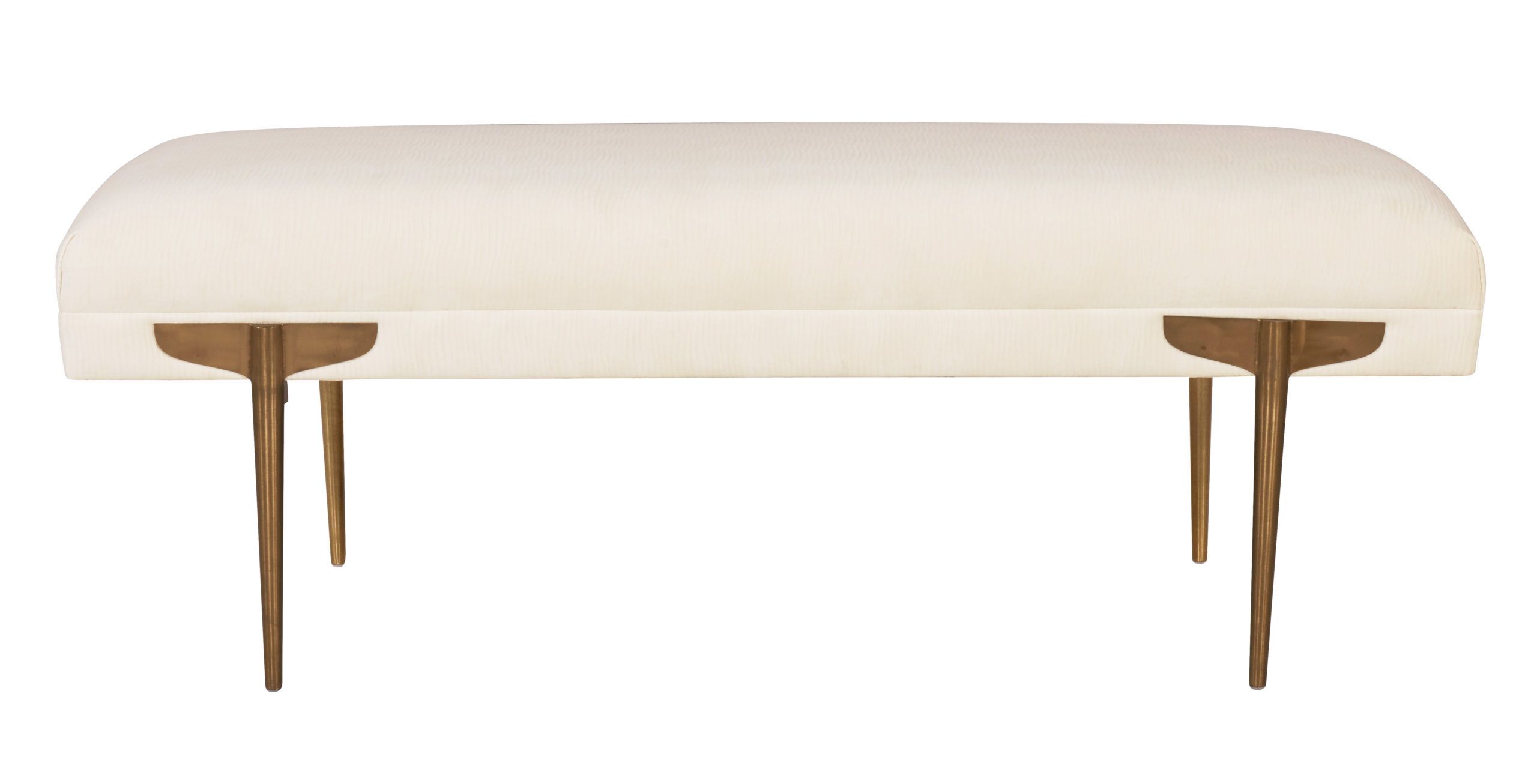 We know you’ll love our elegant Brno velvet bench. Soft, textured upholstery perched upon four stylish gold legs, allow this bench to shine in any space. The Brno is available in several color options.