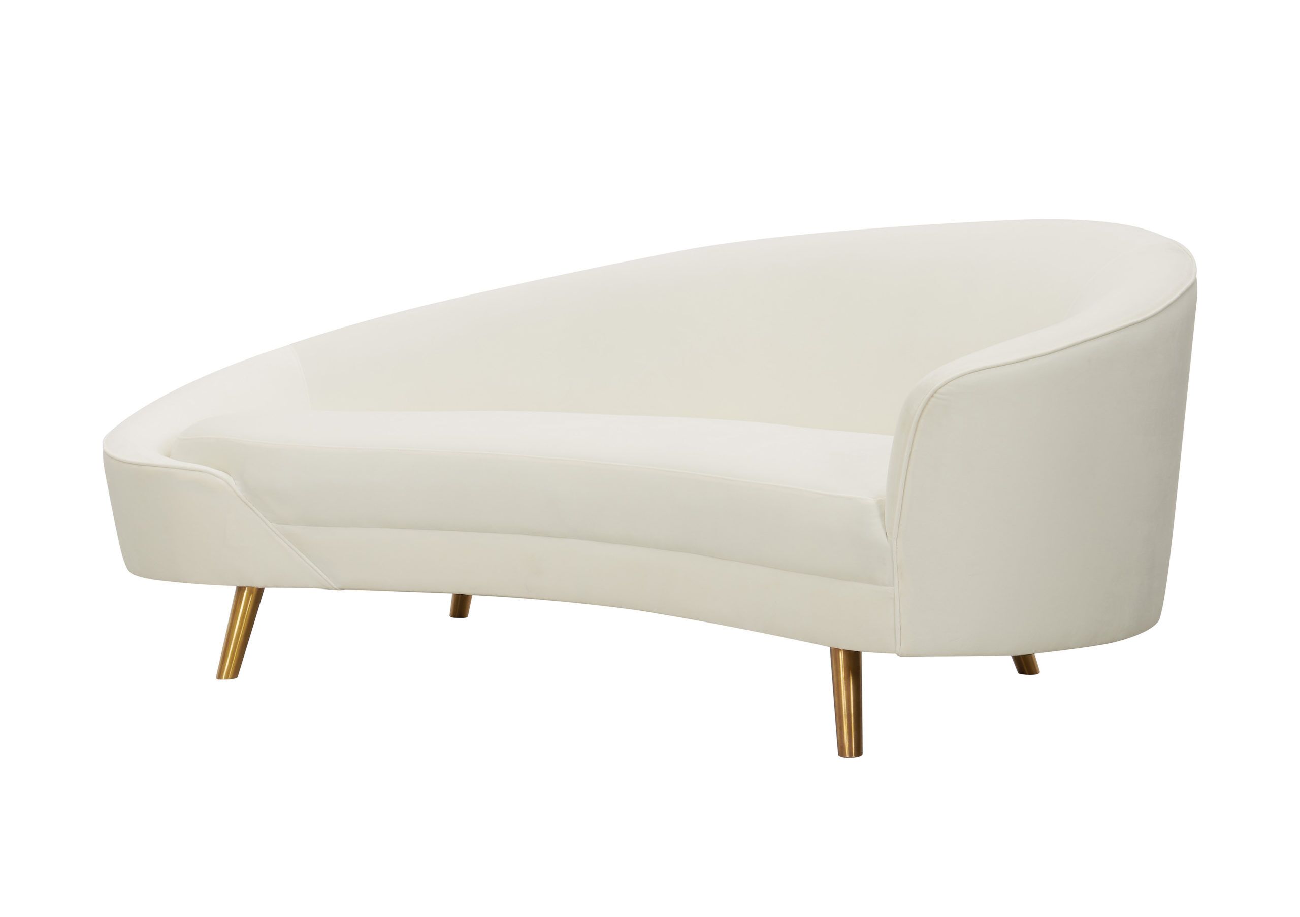 With its sloped edges and striking color, the Cleopatra sofa adds a burst of fresh style to your space. Its plush velvet upholstery, piped stitching and glamorous gold legs come together in perfect harmony to create this showstopper. Available in various deluxe color options.