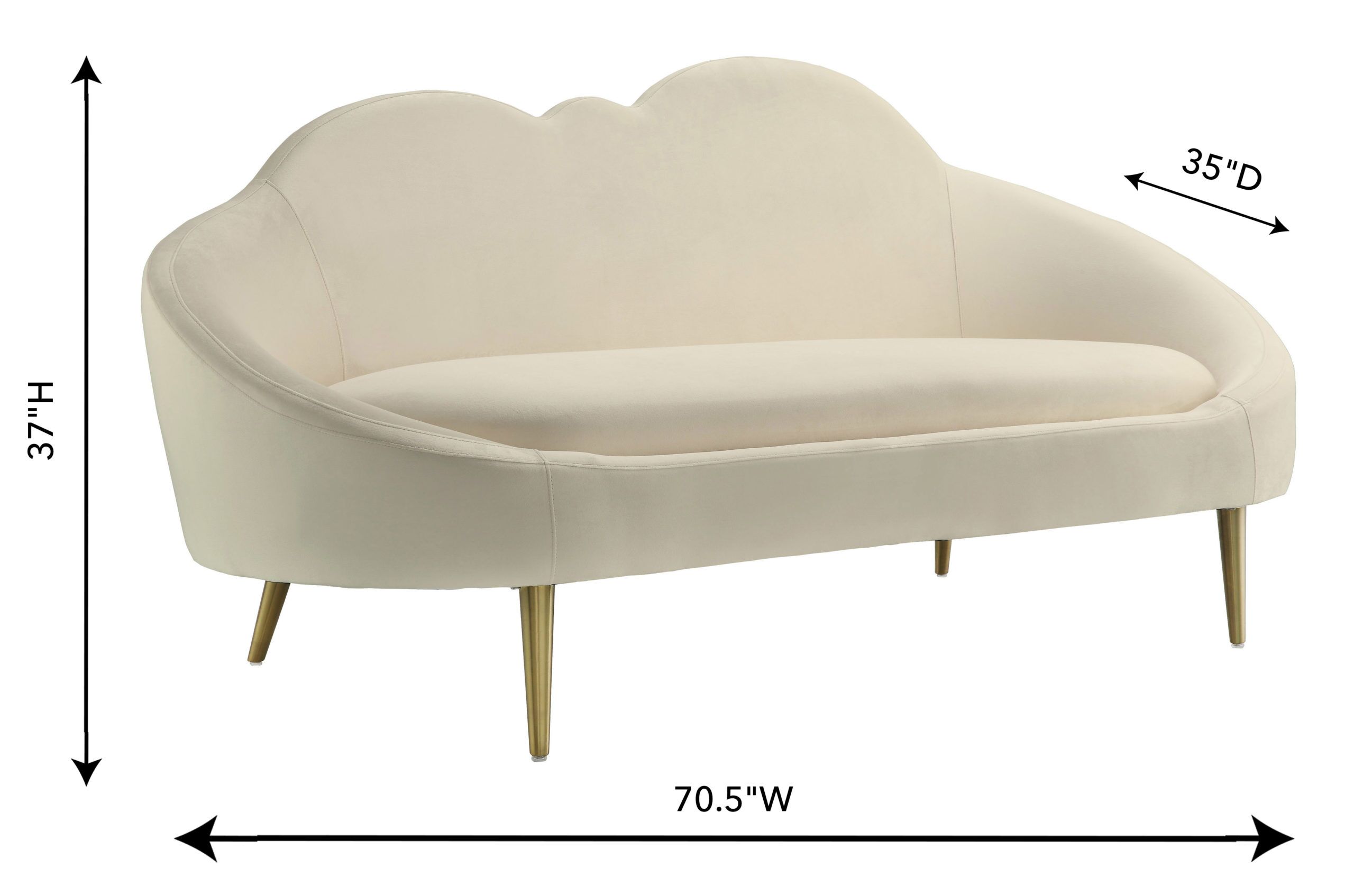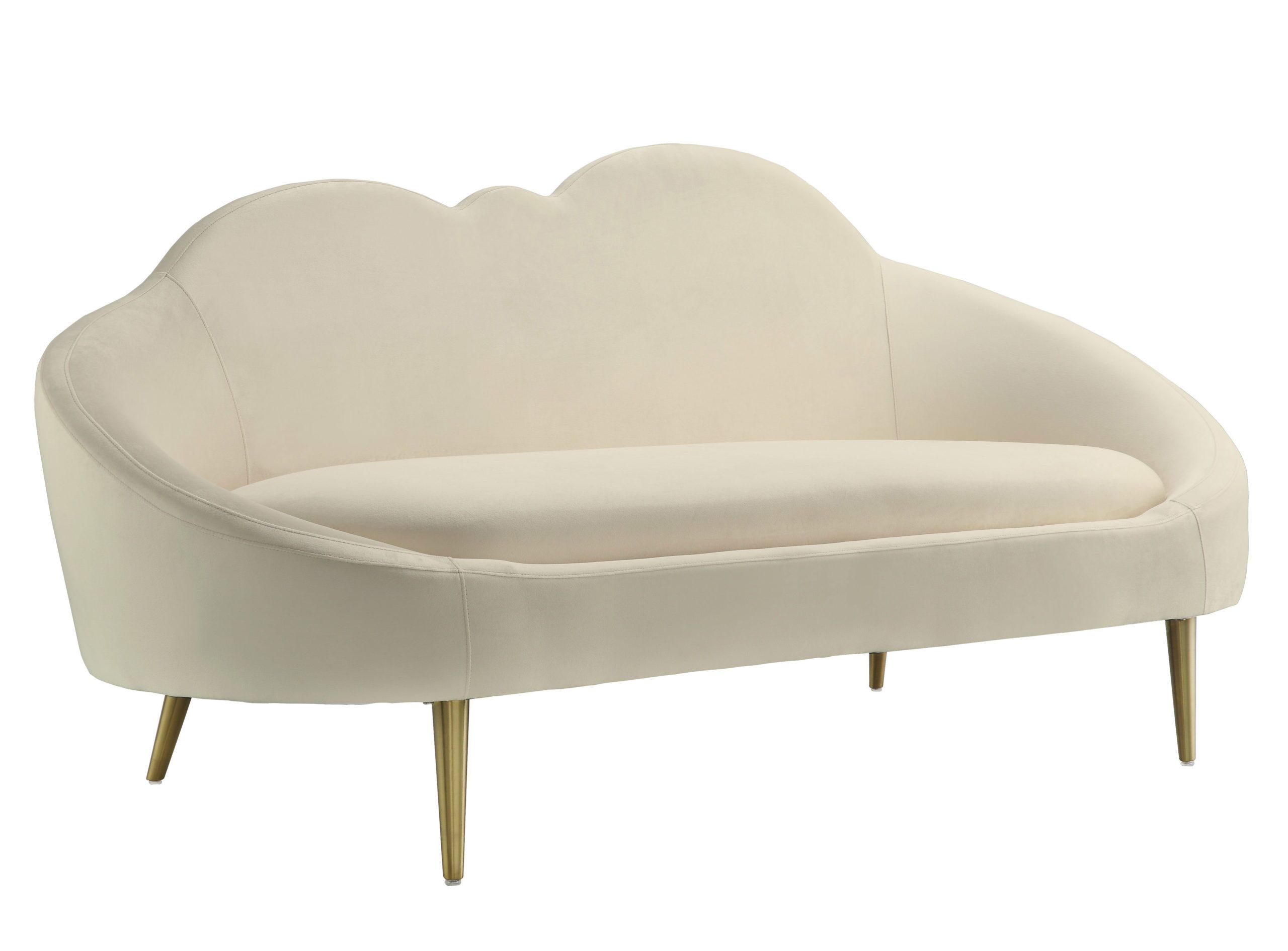 The name says it all. Sink into the Cloud setee and let yourself float away in relaxation. The lush cream upholstery, gold stainless steel legs and curved silhouette will add style to any room.