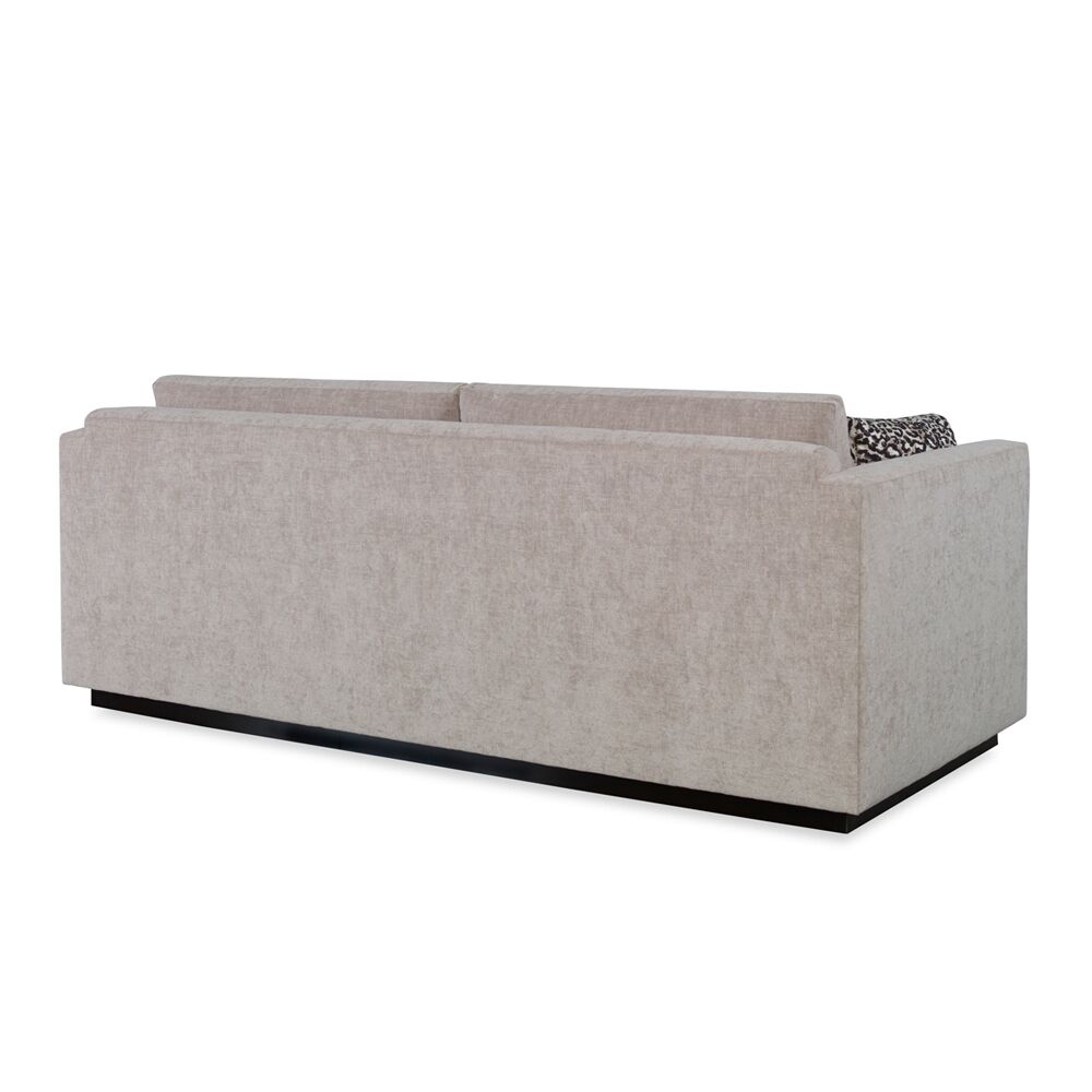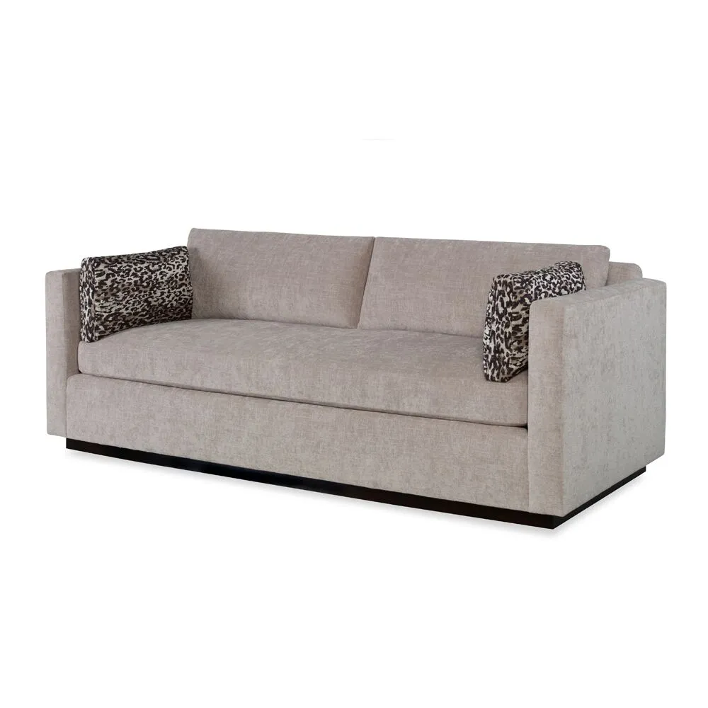 The Colton sofa features bench style sofa seat with wood espresso base and comfy cushions. Modern lines make this a statement furniture piece. Made in the USA. Customize by choosing your upholstery.