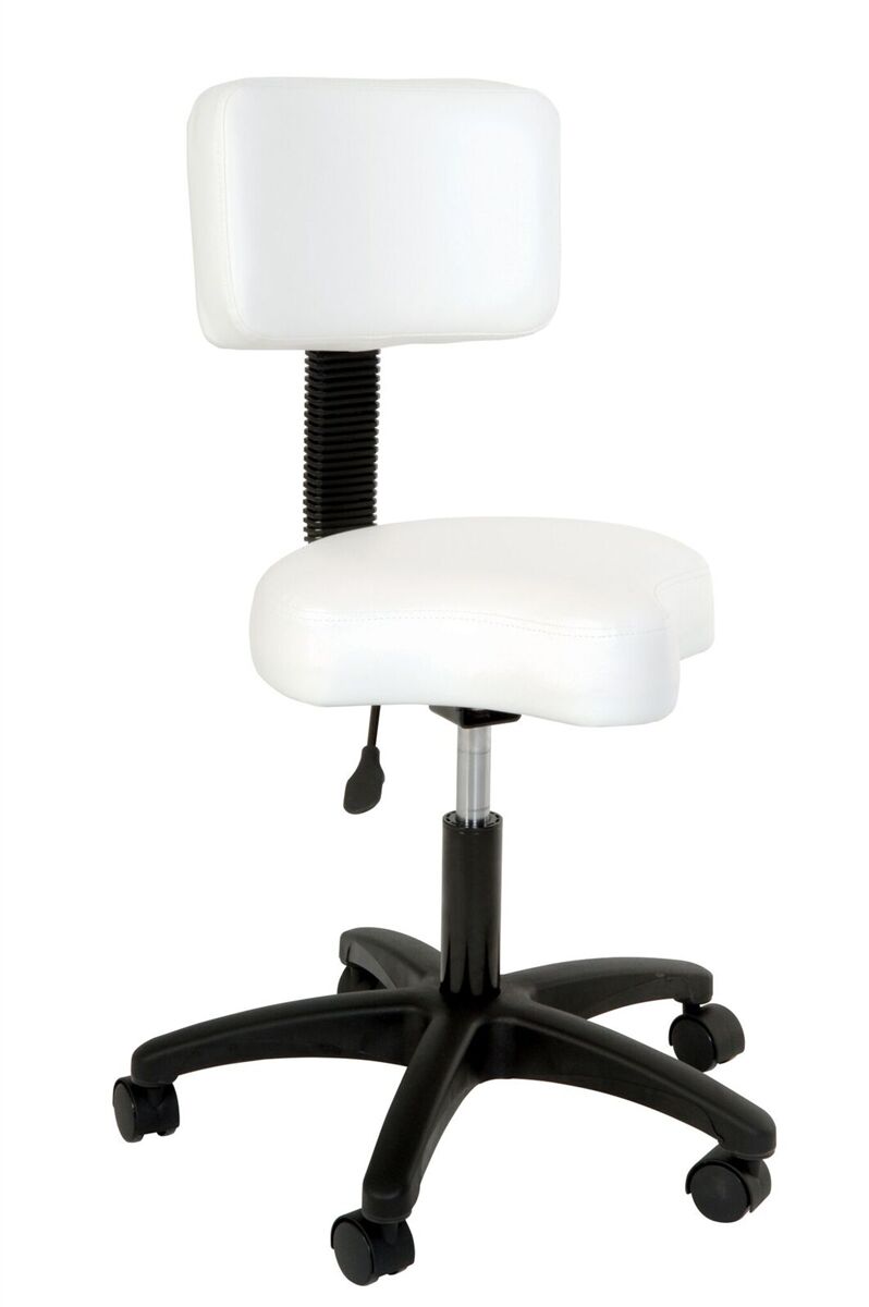 Contoured seat-cushion and lumbar support make this stool a preferred seat for those who enjoy more flexibility and wider range of motion in the legs. Five whisper-quiet rolling casters on a large stable base make this stool a simple addition to your treatment room with easy access to supplies and a generous 3” padding for maximized comfort and superior quality. The stool also features a hydraulic piston for smooth height adjustments. With a variety upholstery of options, the stool can be suited to match any decor. All upholstery is flame-resistant and easy to maintain with gentle cleansers.