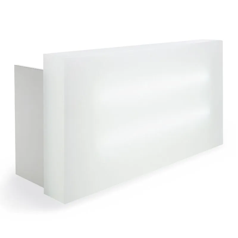 Reception desk with illuminated acrylic front. Laminate cabinet with shelf for keyboard, two doors and two drawers with keys. Made in Italy.Dimensions209 x 72 x 104(82.3” W x 28.35” D x 40.94” H ) Lead times may vary, please contact us for more information.
