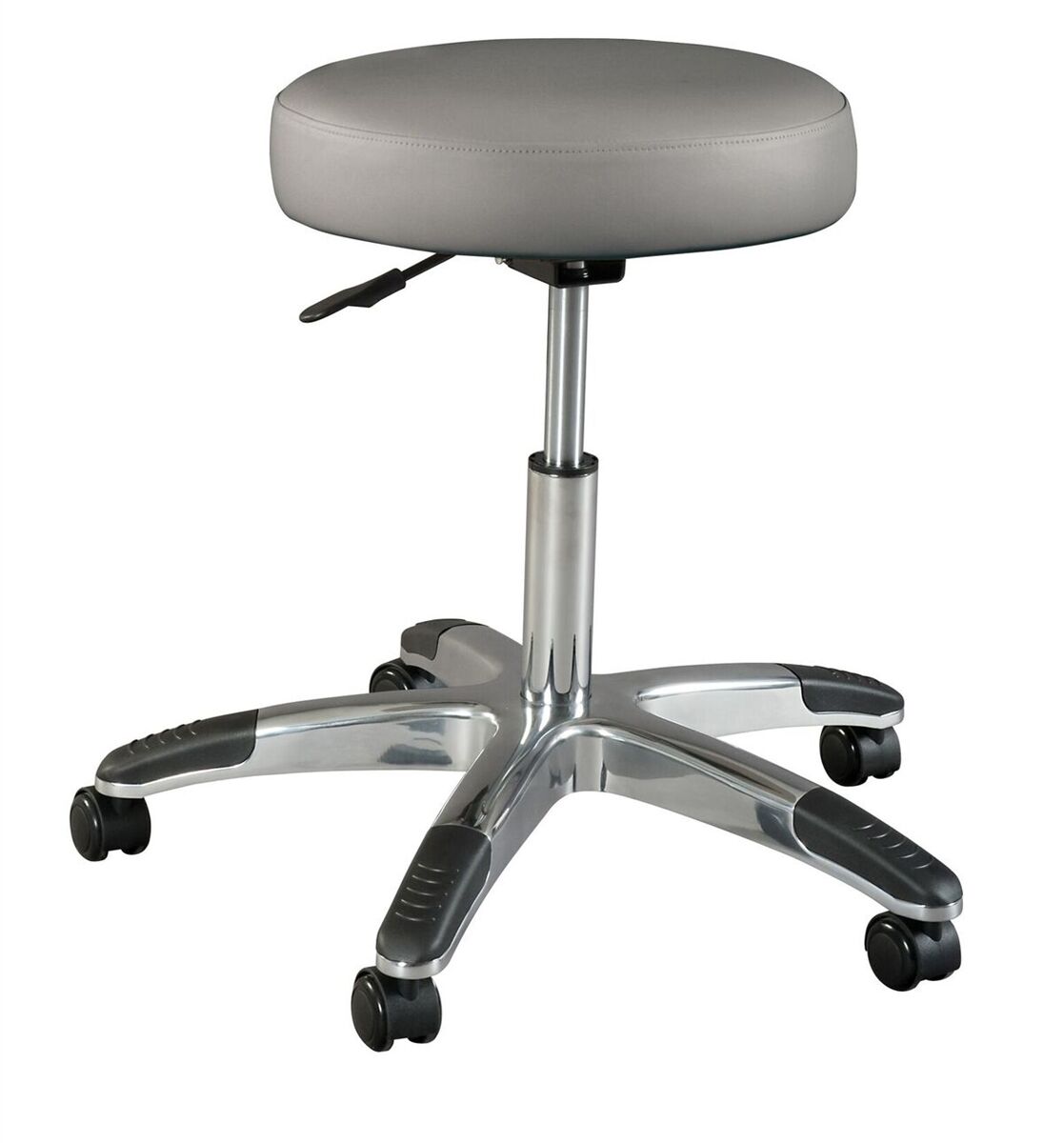 Feel supported in the deluxe round-air lift stool from Silhouet-Tone. This stool features a wide, chrome-plated base with 5 noiseless casters for full support and easy access to treatment room supplies. Enjoy a generous 3” padding for maximized comfort and a hydraulic piston for smooth height adjustments. With a variety of upholstery options, the stool can be suited to match any decor. All upholstery is flame-resistant and easy to maintain with gentle cleansers.