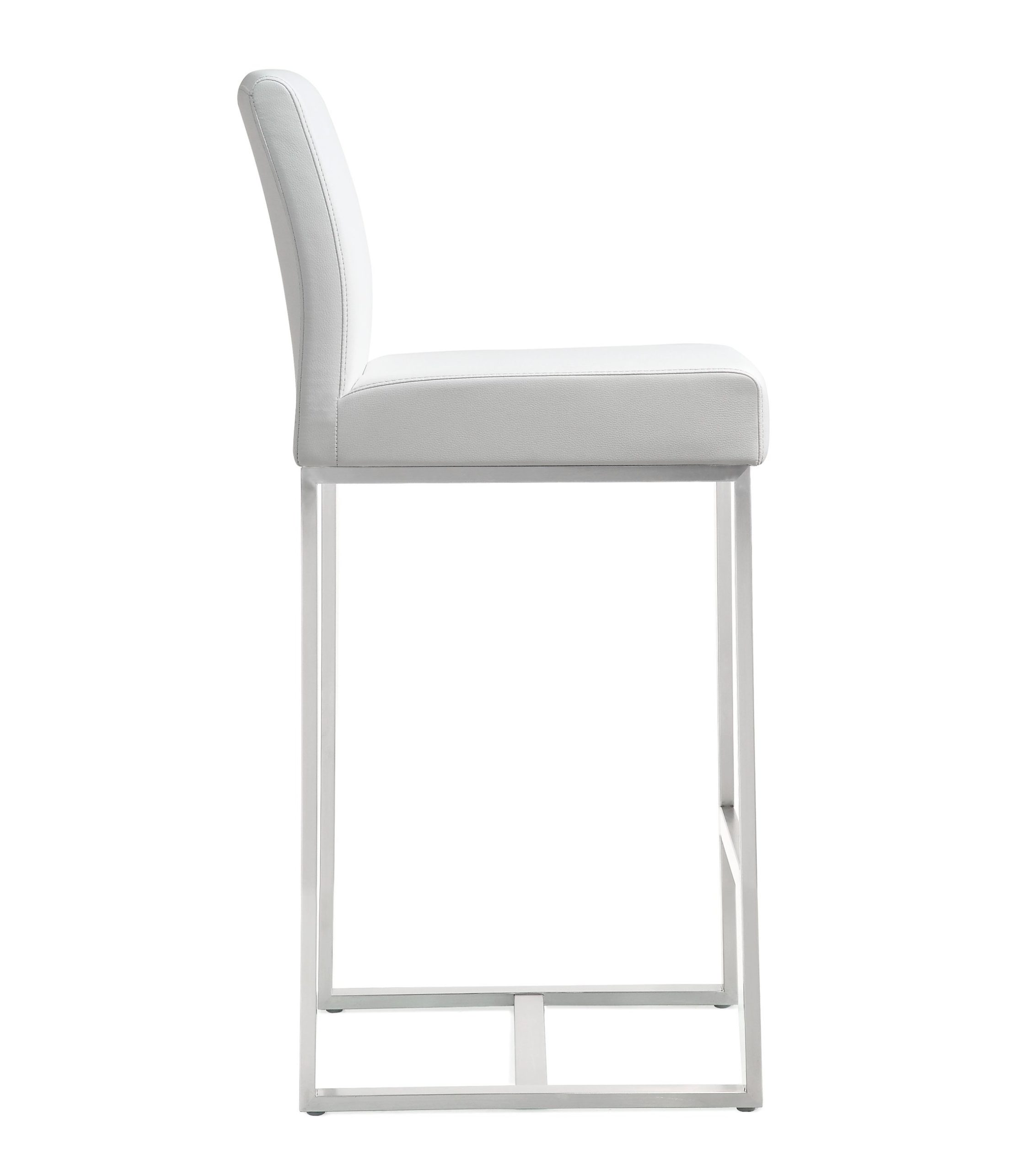 Furnish your space in contemporary style with the Denmark. The solid stainless steel frame provides a sturdy base, while the plush seat and footrest ensure maximum comfort. The combination of angles and gentle curves gives this stool an eye-catching appearance, while the neutral color allows it to match well with any decor.