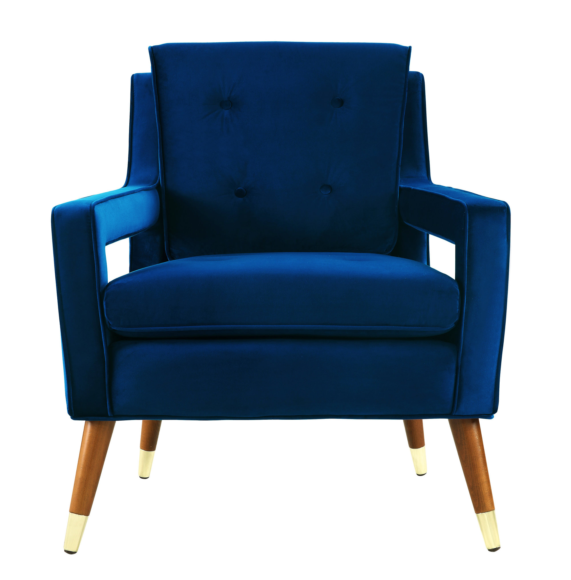 Mid-century design gets a fab remake with the Draper chair. The brown Beech conical shaped legs boast refined gold tipping, while the sumptuous velvet seat and back are button tufted. Available in navy or cream velvets, the Draper is the statement chair you’ve been searching for.