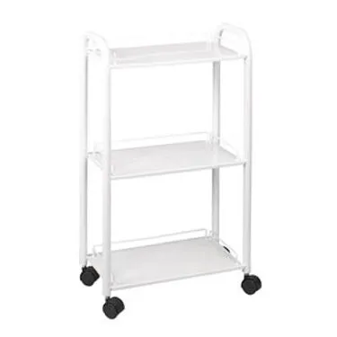 Rolling cart provides extra storage, utility, and work surface. All metal construction Glossy white powdercoat finish Easy to clean and ideal for wax rooms or paraffin Arrives fully assembled 1-Yr Limited Warranty