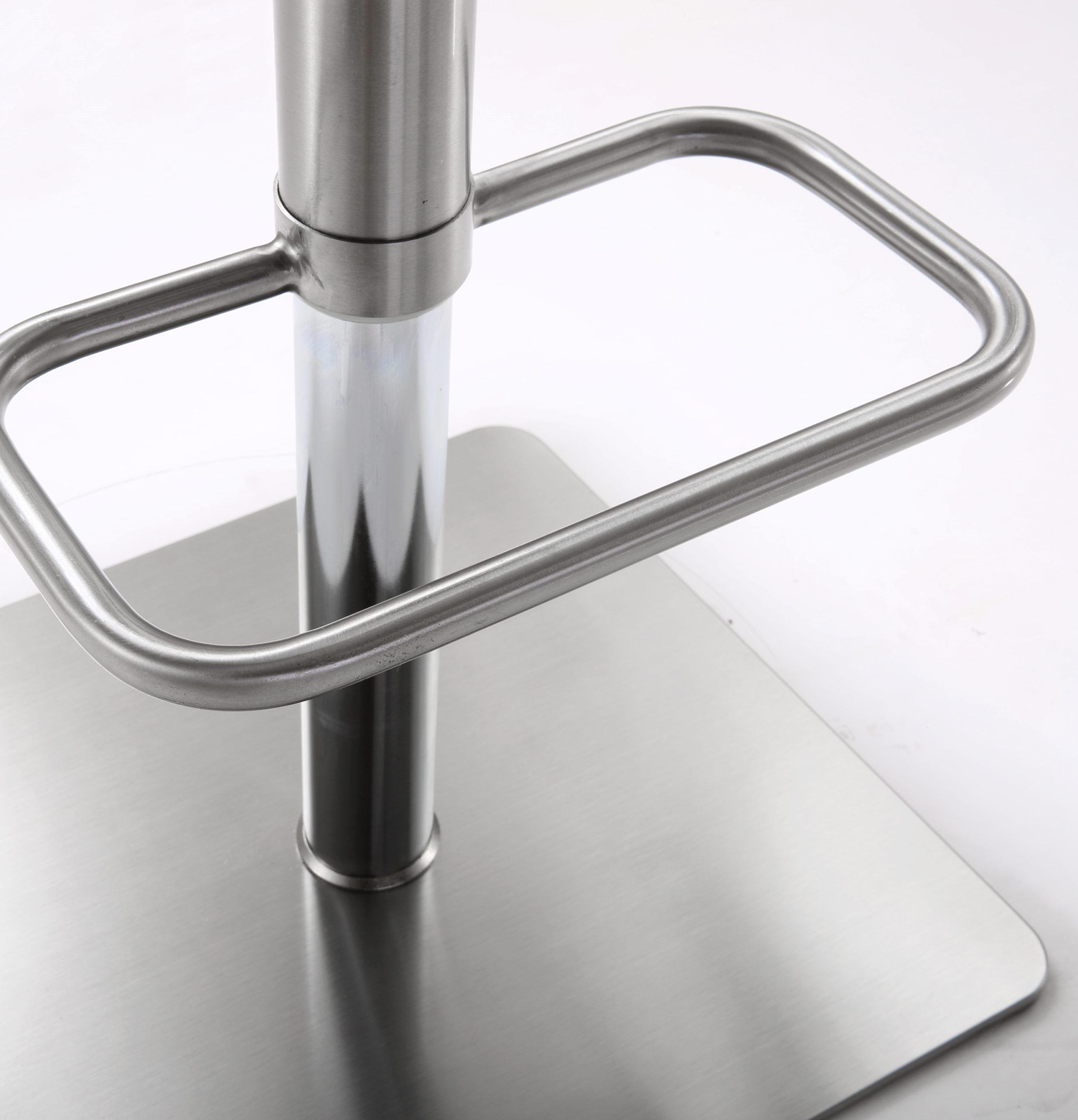 Furnish your space in contemporary style with the Bari . The solid stainless steel frame provides a sturdy base, while the plush seat and footrest ensure maximum comfort. The combination of angles and gentle curves gives this stool an eye-catching appearance, while the neutral color allows it to match well with any décor.