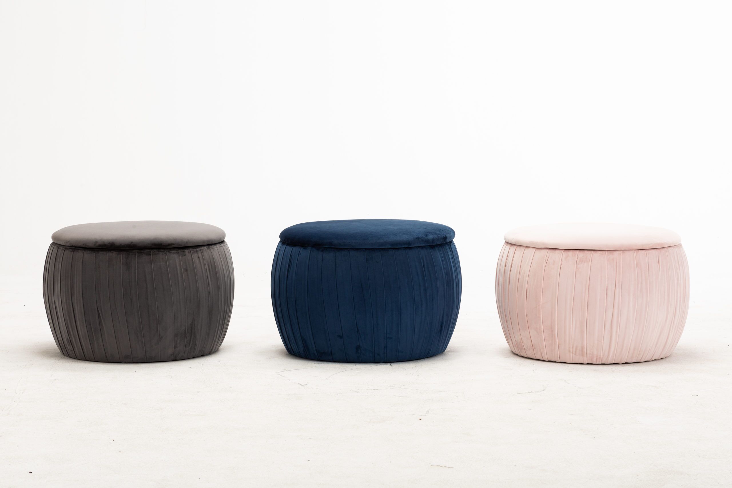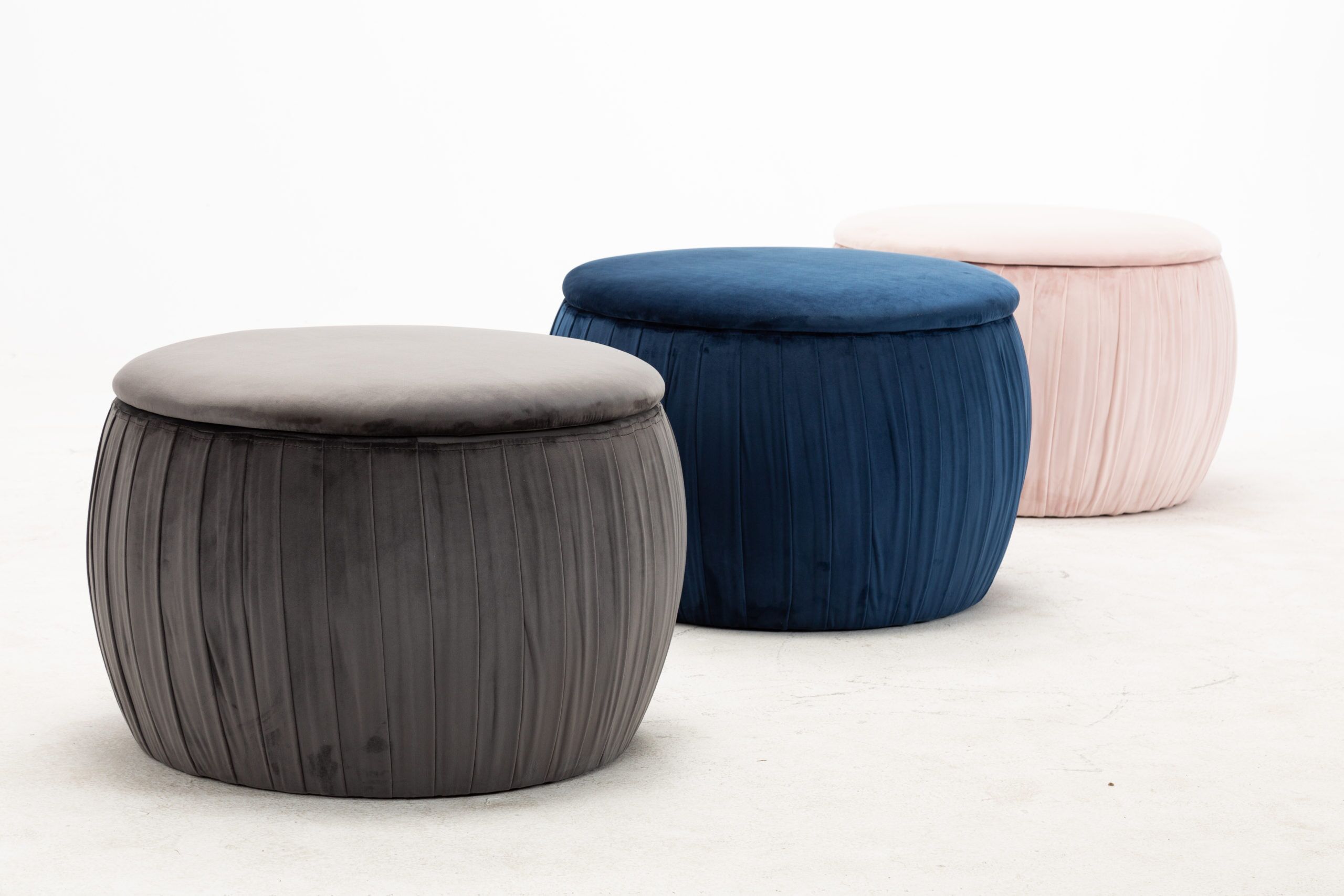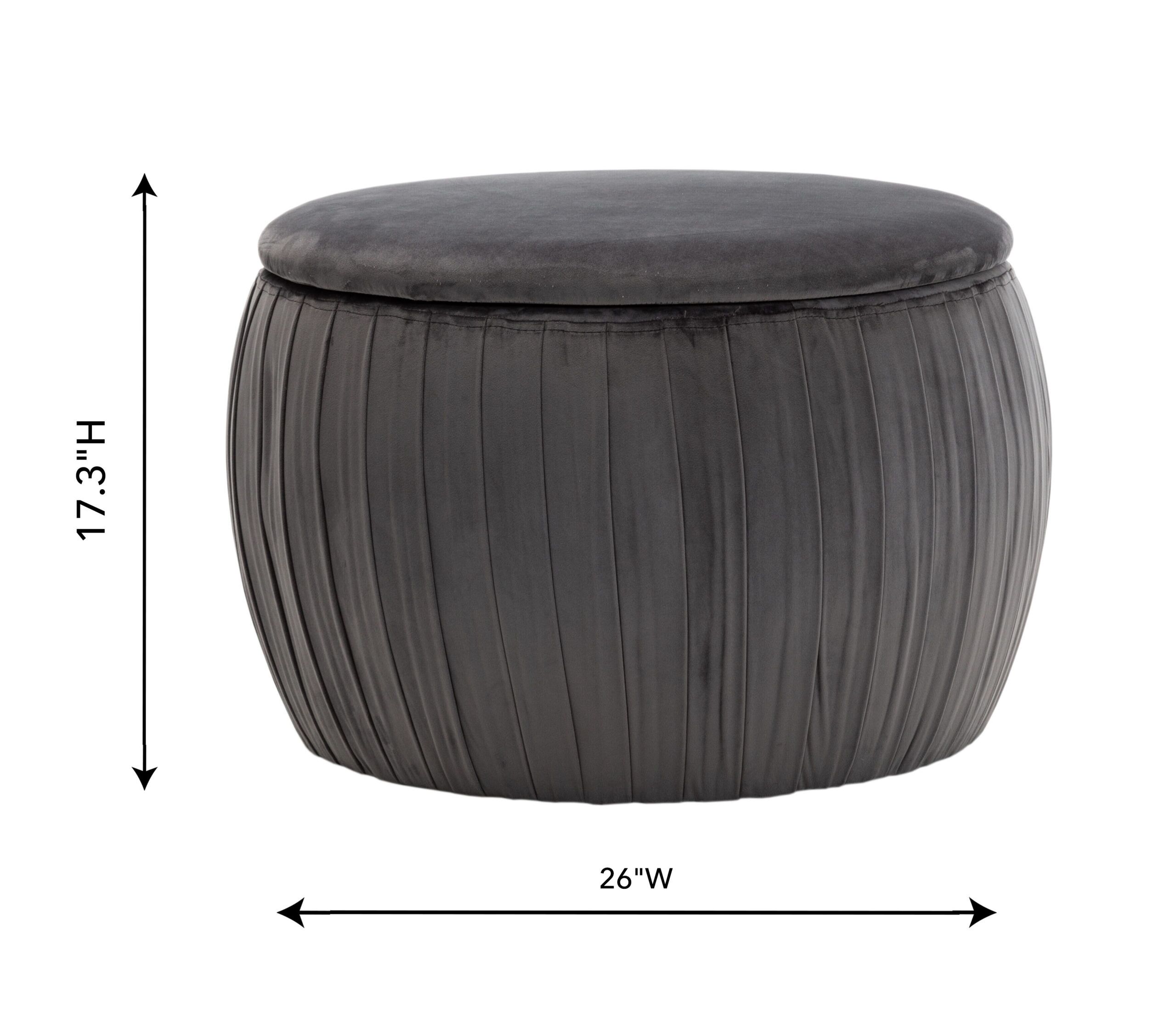 Style; Check. Comfort; Check. You want storage too? Well, the Fleur ottoman offers it all. Upholstered in sumptuous, pleated velvet, its multiple color options make it the perfect accent piece to complement any room. Can be used for storage, as a footstool or just as an extra seat