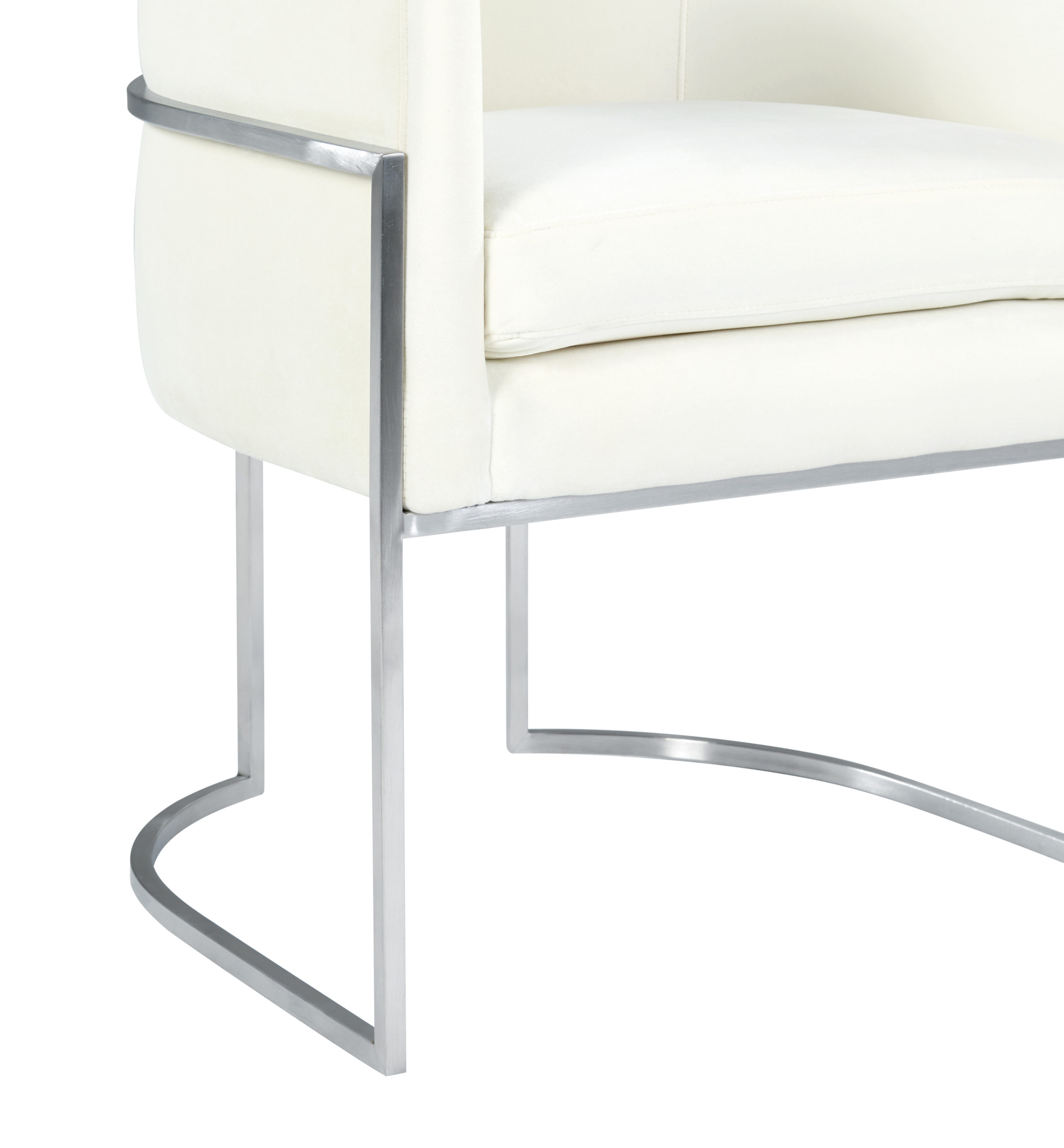 Fabulously chic and demanding attention, the Giselle chair dazzles from any angle. Boasting a rich velvet upholstery this chair is supported by a stainless steel frame, making it both stylish and comfortable.