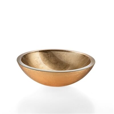 Features:Bathroom Sink / WashbasinTempered (safety) Glass with Clear Shield CoatMade of Gold Leaf GlassDesigner High End Quality Bathroom SinkMade in Italy16.7″ Dia. x 5.5″ H