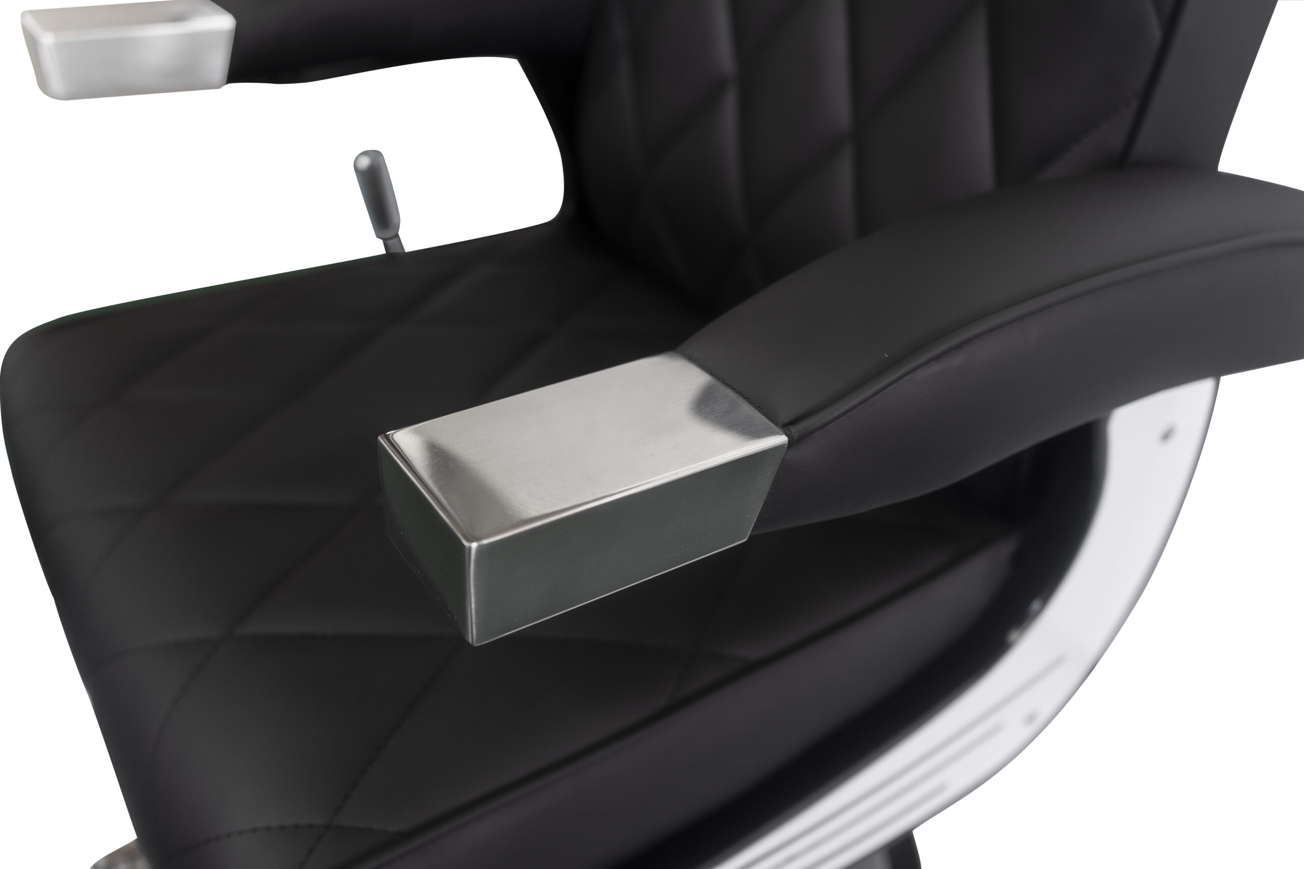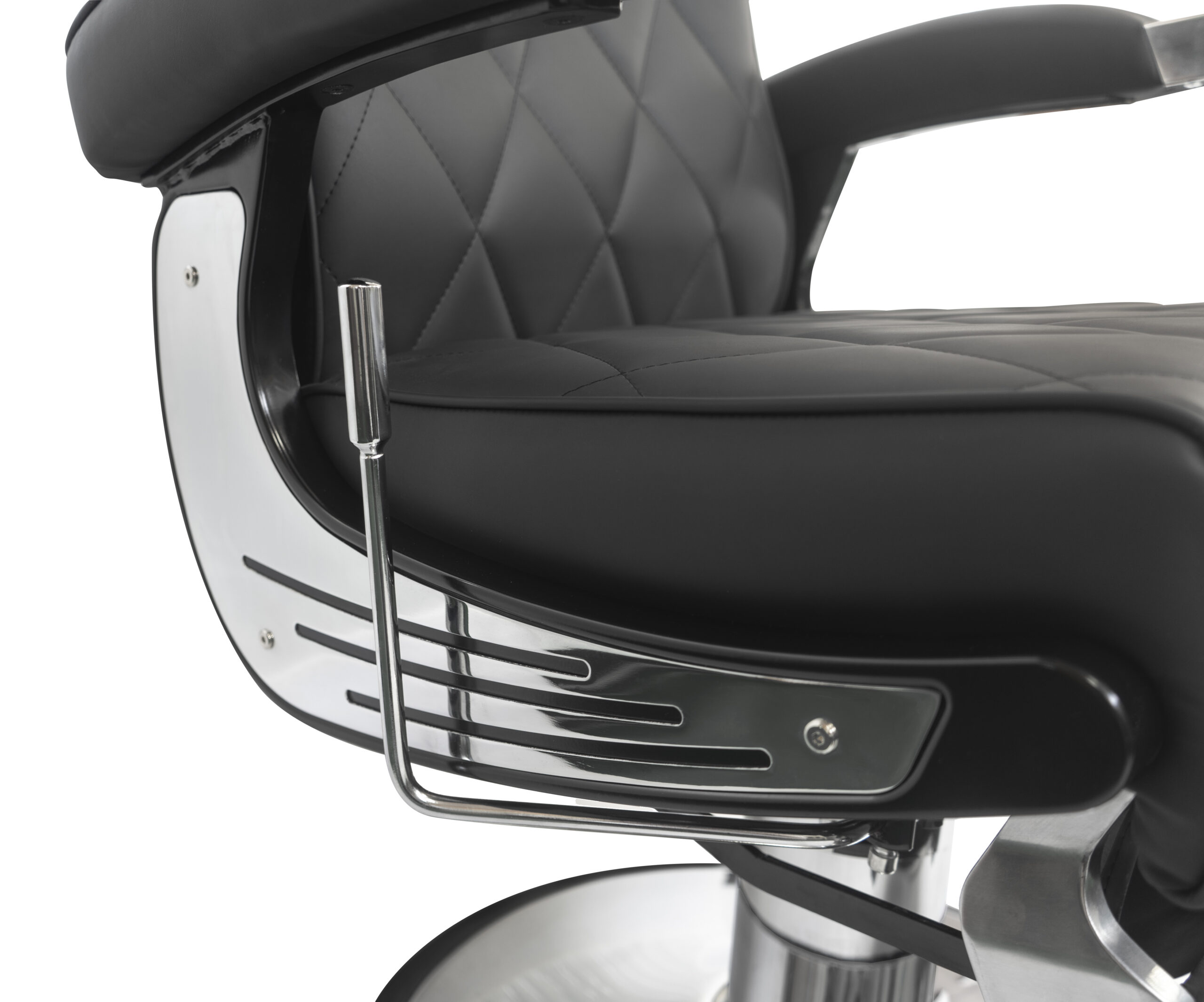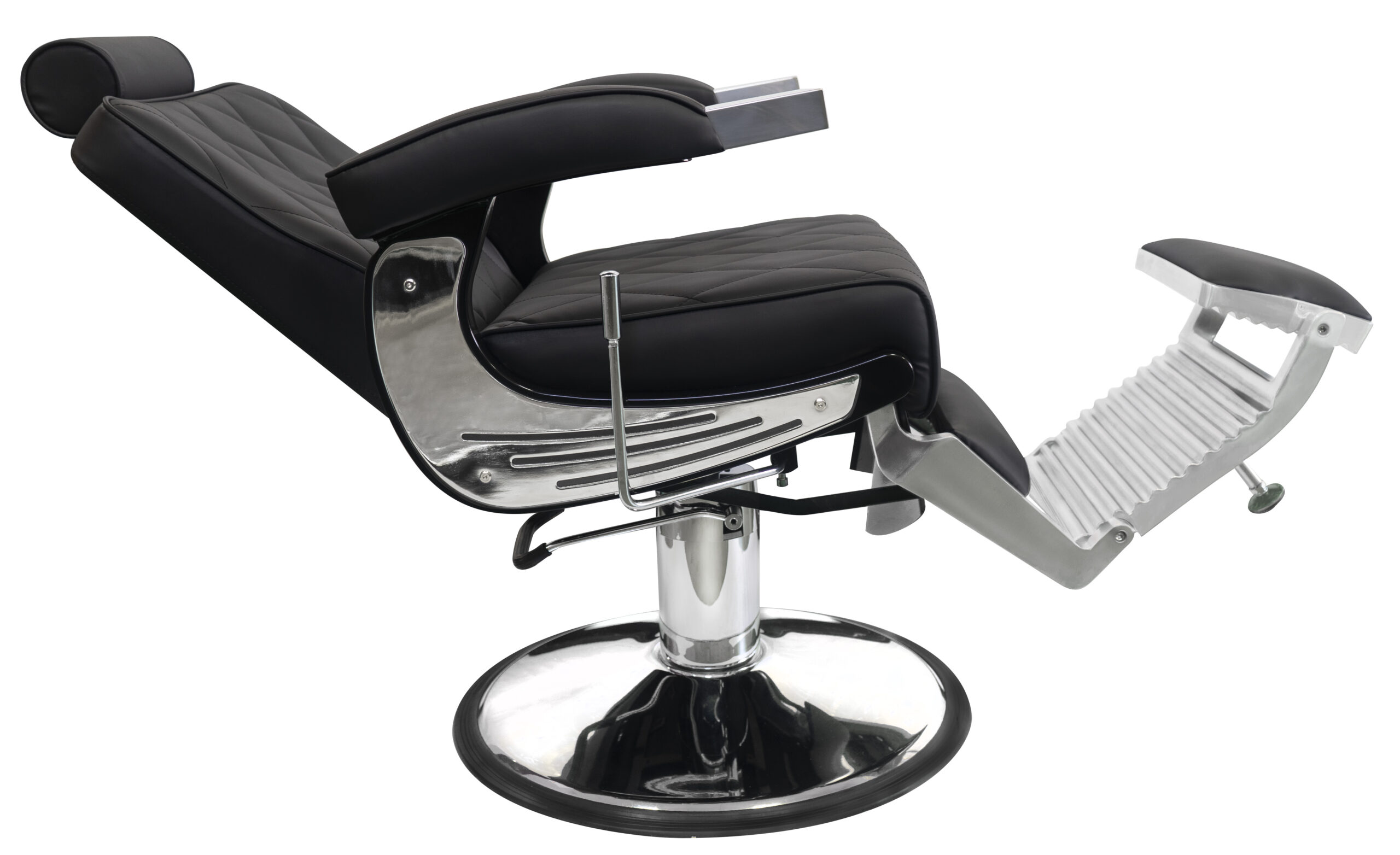 The quilted Grant Barber Chair with adjustable headrest and pneumatic lift assist. Complete with calf pad. Warranty: 7 year on hydraulic pump and 2 year on all mechanical parts and stitching with normal use. Some assembly required: back attaches with one allen screw, footrest supports must be attached. Tools provided.