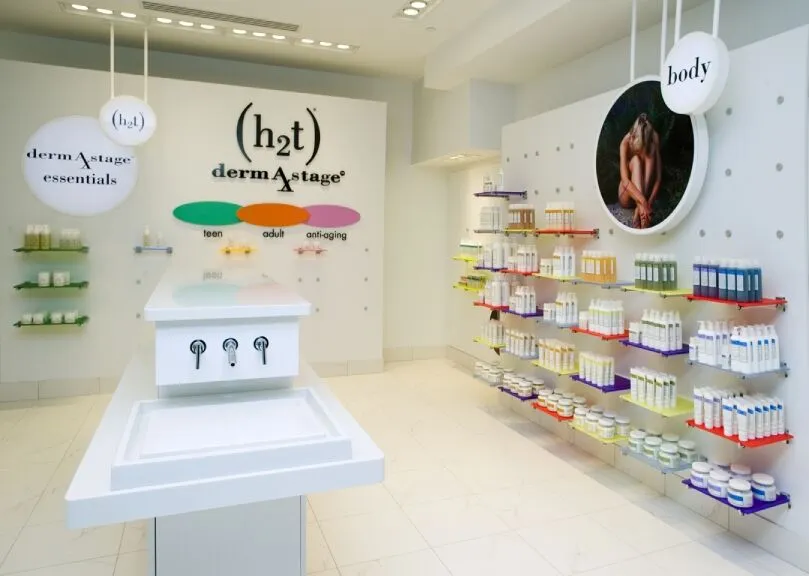 Retail Wall Display Ideal for specialty boutique advanced skin care or hair care products includes graphic holder and adjustable shelving.