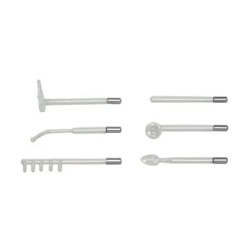 The high frequency generates a warm thermal current that stimulates and aids in sterilization. Argon-violet electrodes are available and must be requested at the time of purchase. An easy to operate micro switch allows precise control. Intensity can be increased or decreased to maximize comfort during treatment. Set of 3 neon-orange electrodes: straight, pointer, and mushroom. Additional electrodes available for purchase Assembled in the U.S.A. 1-Yr Limited Warranty