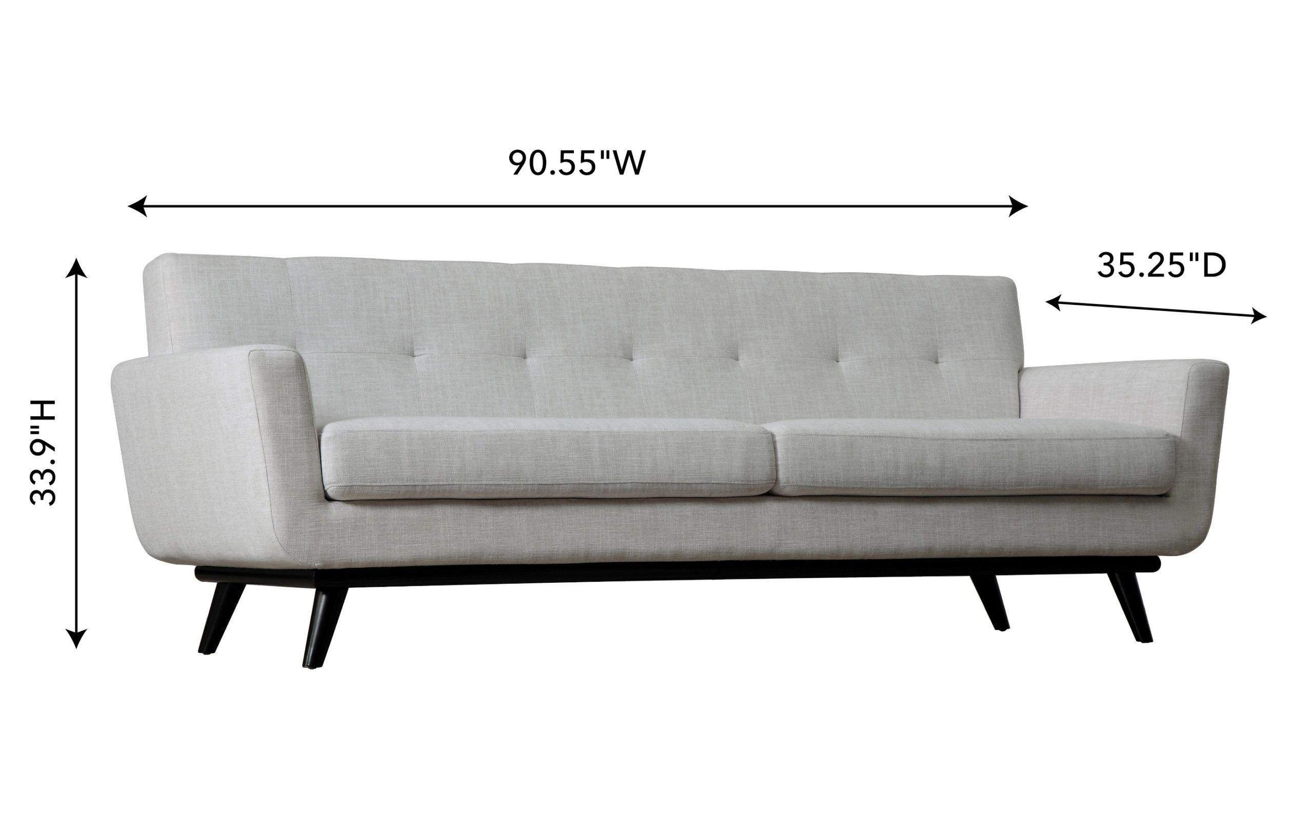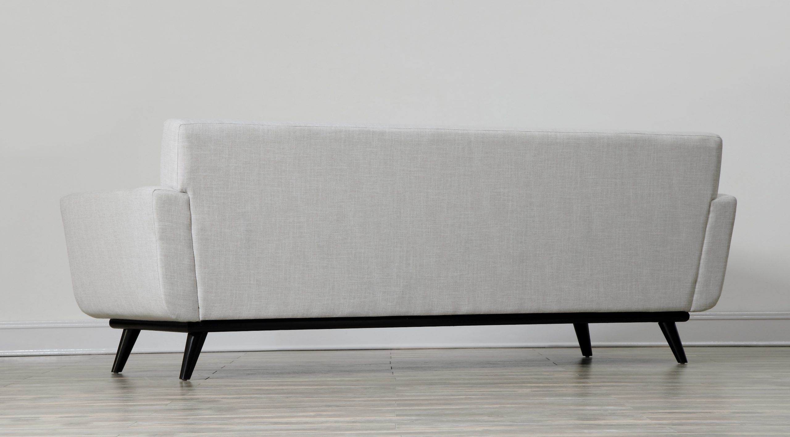 Strong and handsome, with a soft side, the James sofa captures the essence of Mid-Century style. The cushioned arms provide added comfort while the small scale tufting adds a pop of personality. Made from a kiln dried wood frame with solid Birch legs, this handcrafted sofa will undoubtedly add style to your space.