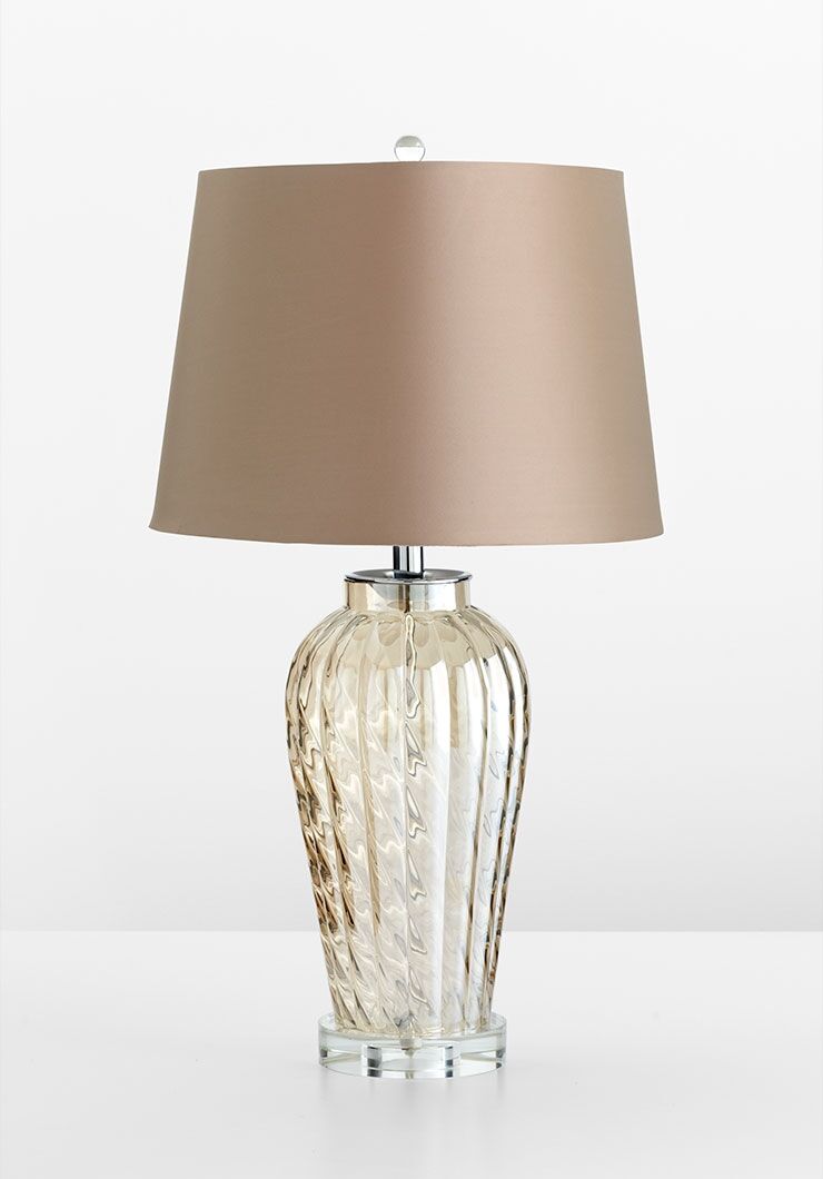 Glass / Crystal Base Satin Taupe Shade / Satin White Lining
