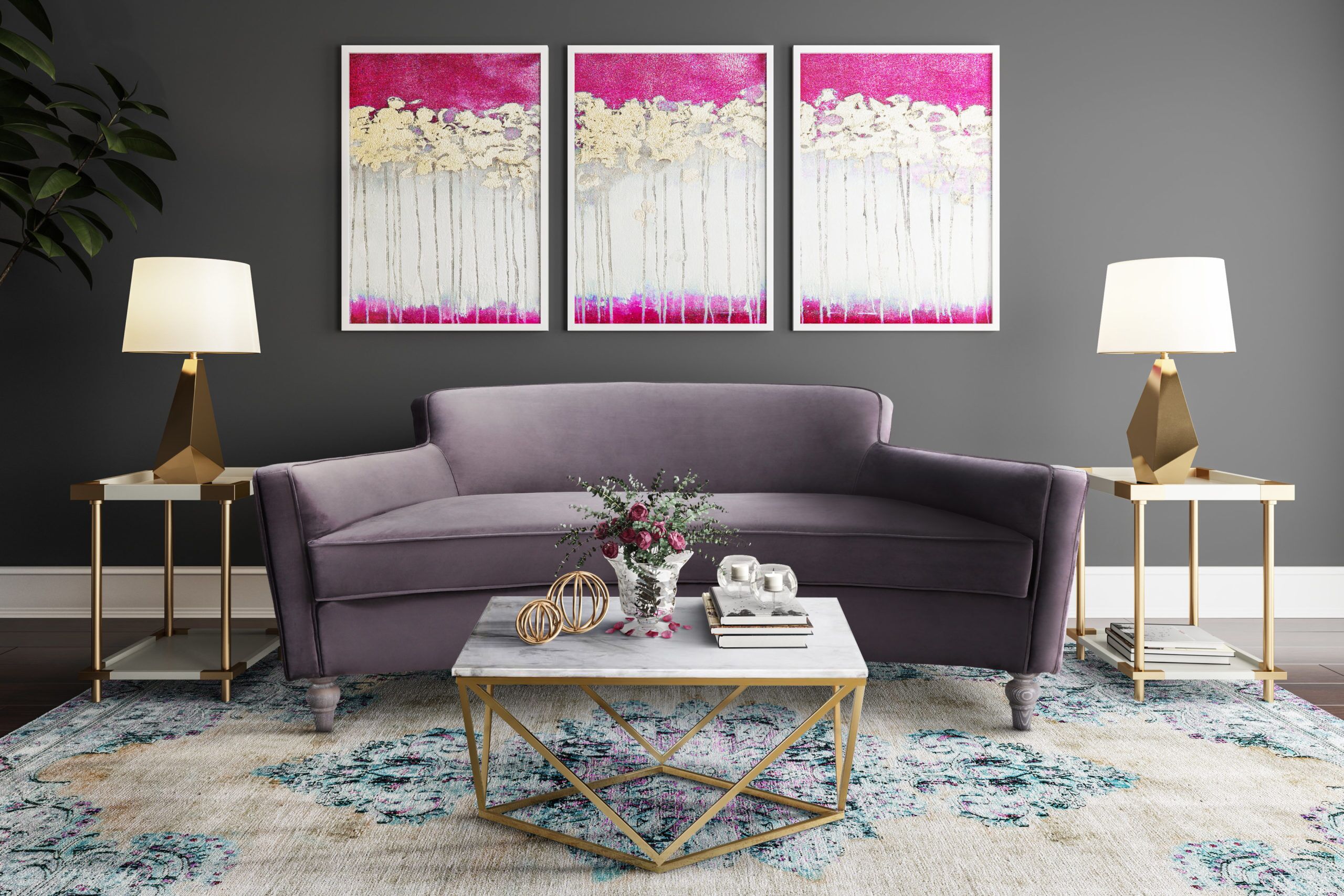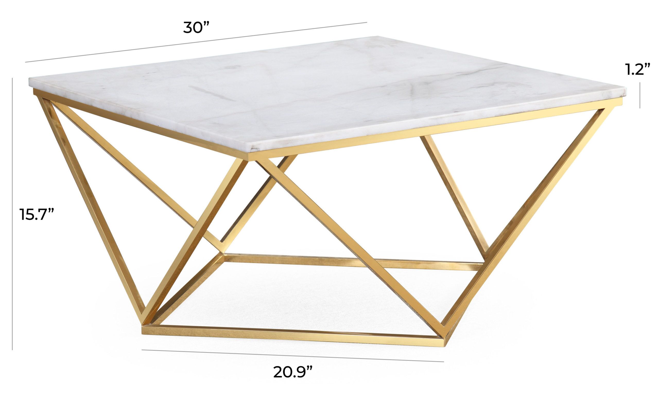 Modern with an organic twist, this eye-catching design shows off an elevated white marble top elegantly anchored to a gleaming gold steel base. Brimming with luxury and refinement this cocktail table is sure to be a standout piece.