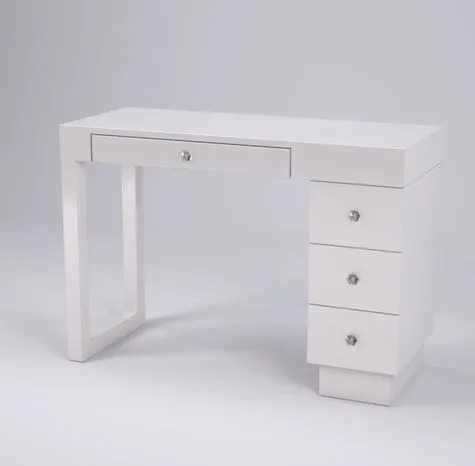 The Linea Nail Desk from Michele Pelafas delivers a practical workspace solution for nail technicians who value both style and organization. This single table features a side cabinet with three equal drawers, providing ample storage for tools, polishes, and supplies. Measuring 40″w x 16″d x 30″h, the desk’s modern clean lines integrate seamlessly into any salon décor. Customize your setup with optional upgrades including an additional pencil drawer for extra storage, UV gel lamp cut-outs for portable lamp integration, or an upholstered armrest available in white, beige, espresso, black, or ivory. The Linea Manicure Table collection offers custom options like grommet holes, alternative finishes, and varying sizes to match your specific needs. Built with quality craftsmanship, this nail desk requires a 6-8 week lead time. Whether you’re outfitting a new salon or upgrading your current station, the Linea Nail Desk combines functional storage solutions with sleek design for a superior professional workspace.
