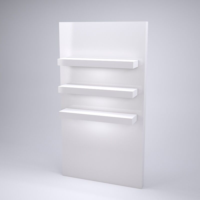 Your retail will glow with this simple clean and modern wall panel with integrated LED Light floating retail shelves. Select your back panel finish and finish for shelves. 1 Duplex outlet for integrated LED lighting. 120V. Lead time 6 to 8 weeks.