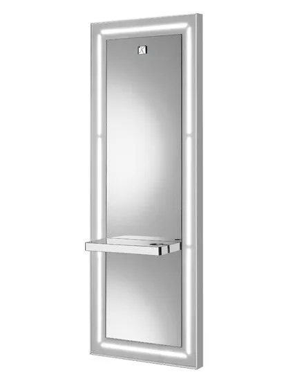 Styling unit with acrylic finish and a lit LED frame with polished chrome finishing. Aluminum shelf with hair dryer holder. Made in & shipped from Italy – Please allow 8 to 10 weeks for delivery.