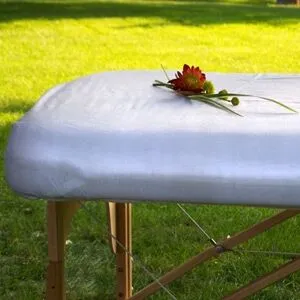 Your clients will feel pampered resting on these extra-soft, beautiful fitted table sheets. Available in White, Natural, and Sage. One fitted sheet to fit a massage table 33″ x 73″ after initial washing.