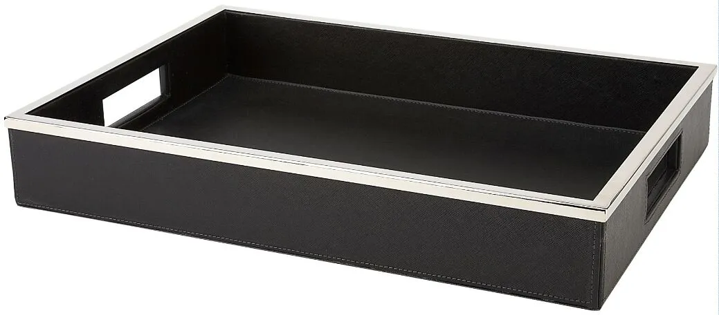 Add color to any room with the rich, vibrant hue of the Madrid Tray. Used either as a serving piece or decorative item, this tray will be a perfect addition to any home. Cross-stitch faux leather texture; stainless steel rim. Dimensions 3.1″H x 20.4″L x 14.5″W