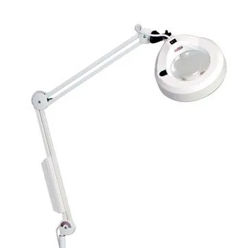 UL listed 5-diopter (x2.3) magnifying lamp with optical grade lens and a rugged, high impact aluminum cast body. Electronic ballast eliminates flicker to reduce eyestrain and extend lamp life. C-clamp table vise included. Optional metal roller base model no. 52. 5-Diopter distortion free optical lens Flicker free ballast reduces eye strain High impact aluminum body Circline lamp eliminates shadows Fits with all facial vaporizer combos UL Listed 3-Yr Limited Warranty