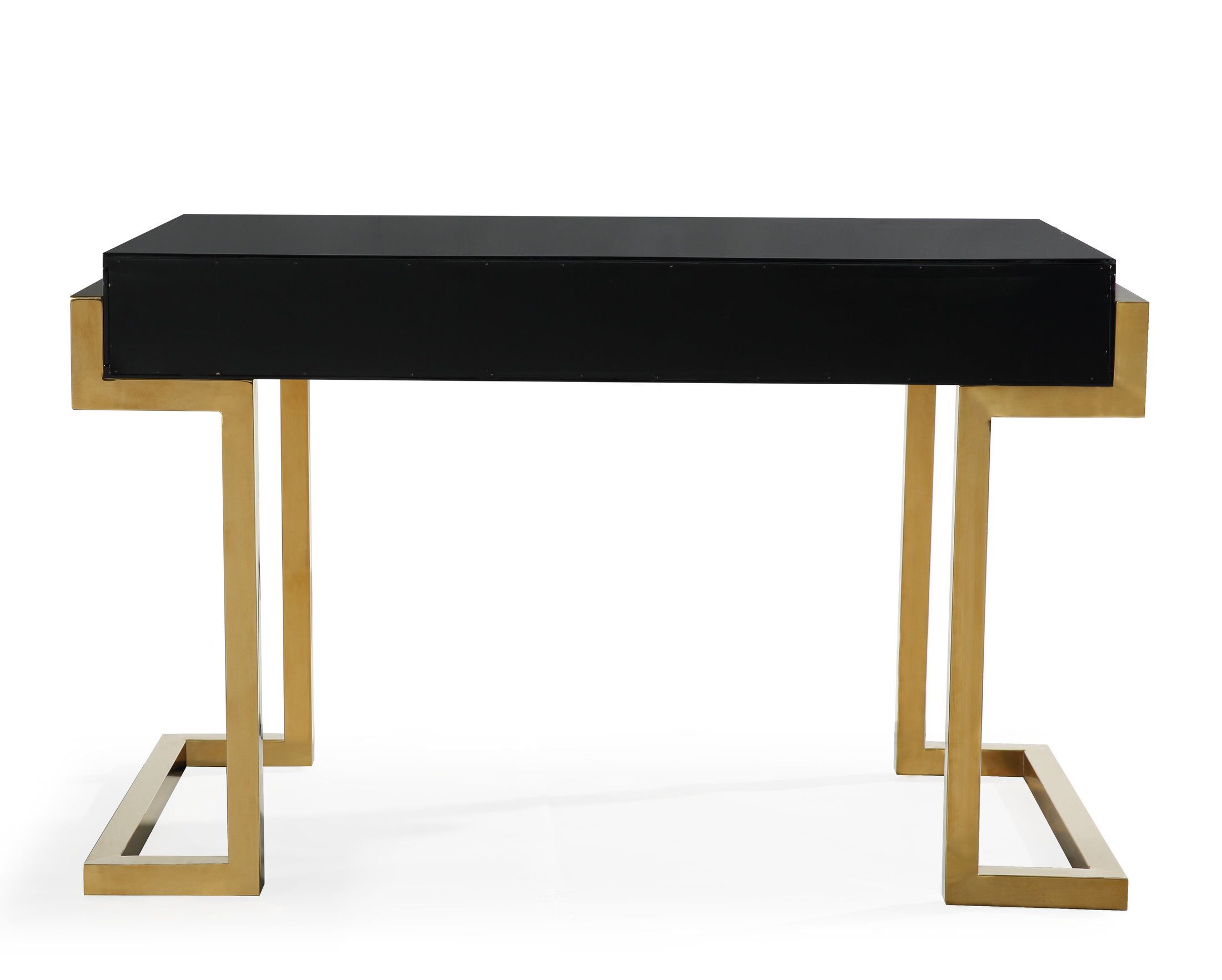 Inspired by luxe Hollywood decor, the Majesty Statement Desk is the ultimate statement piece. The gold handles pop against the high-gloss black base. Add this piece to your room to crank up the glam.