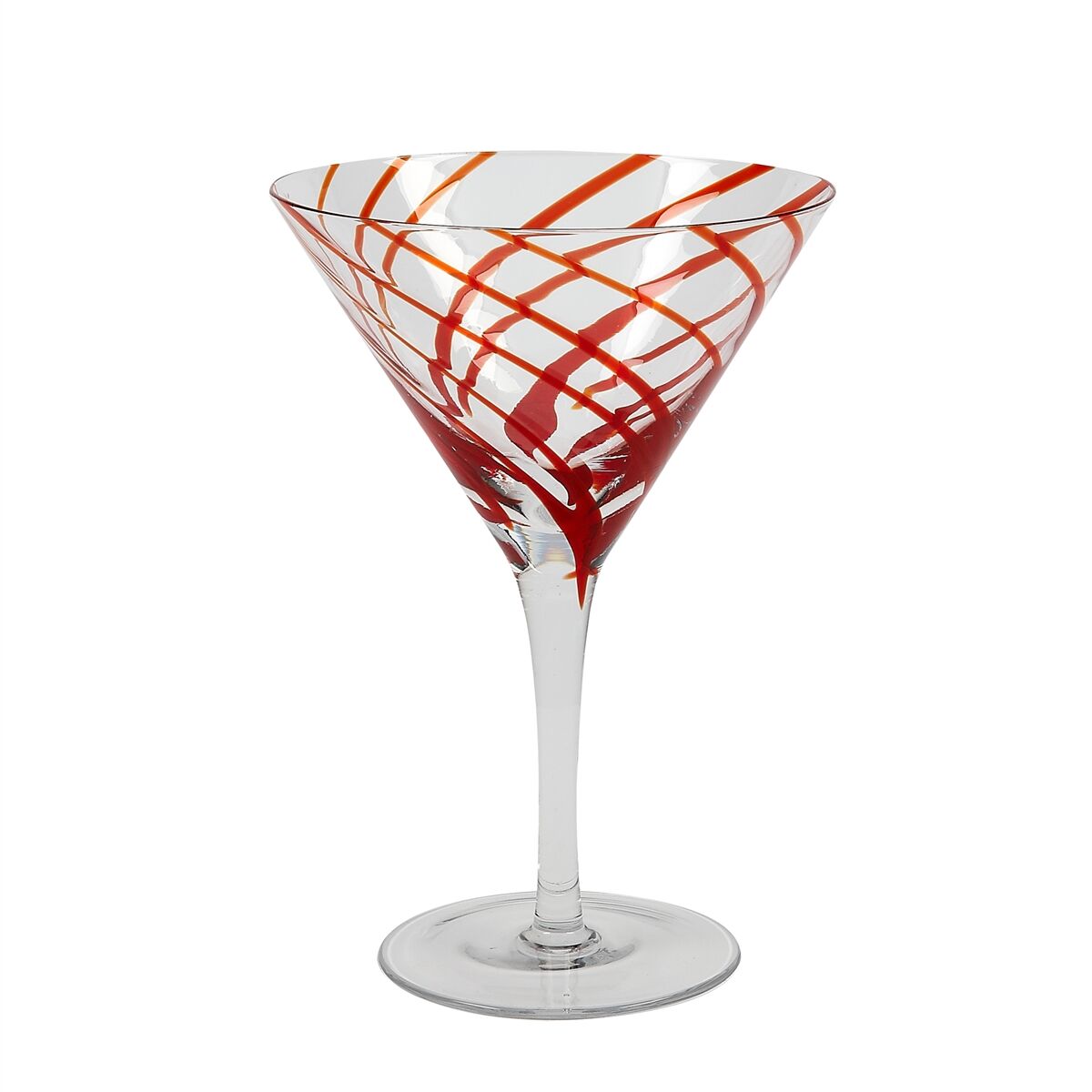With vivid pops of bright color swirling against crystal-clear glass, the Marbella martini glass is an upscale, elegant addition to any barware collection. Each hand-crafted glass in this set is dishwasher safe for easy clean up. Hand-blown glass with black, blue or red swirls Dimensions 7.5″H x 5″D – 8 oz.