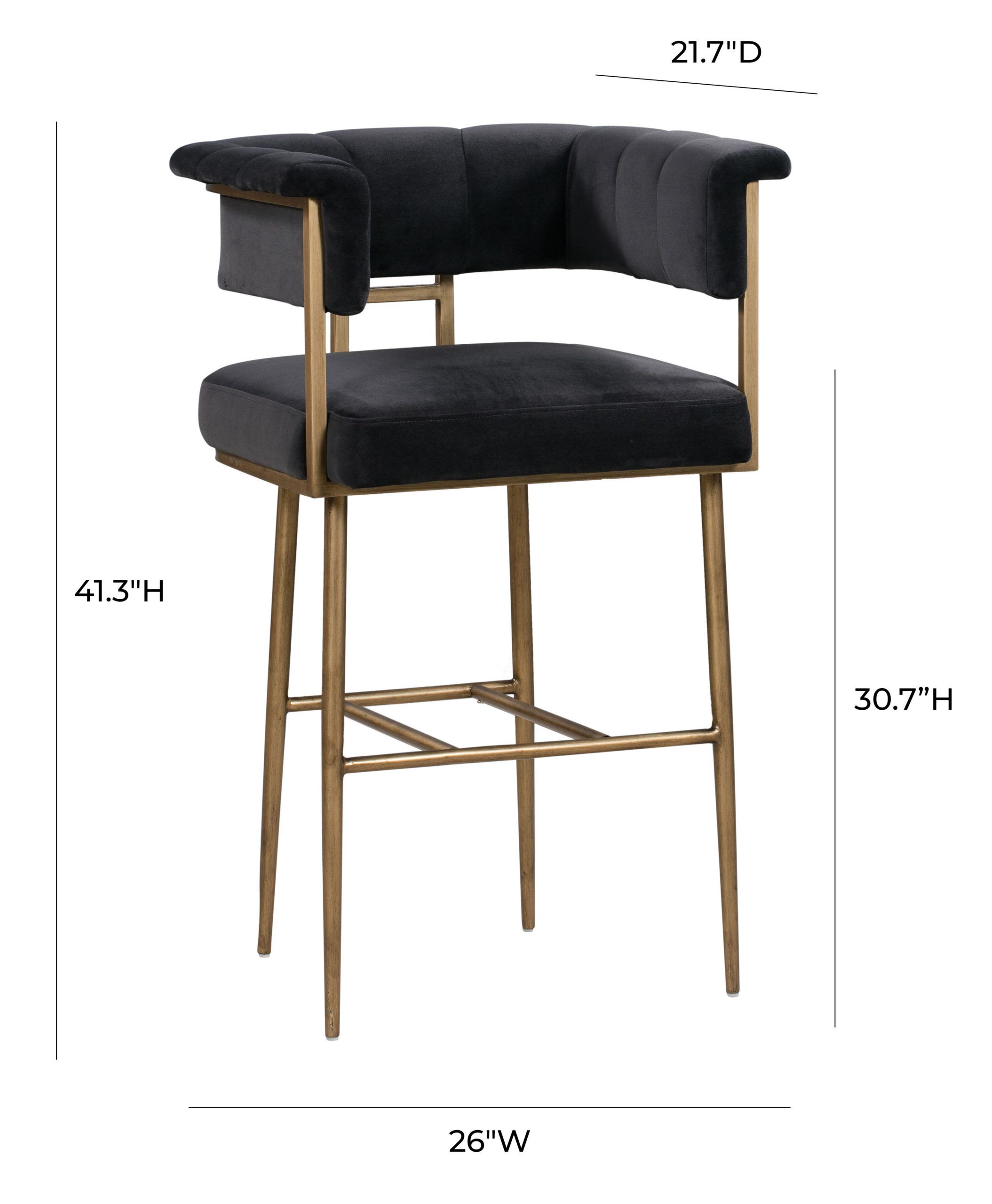 The Astrid collection is sure to elevate the design of your space. Boasting rich upholstery, rolled arms and an exposed frame finished in antique brass. Available in both bar and counter heights.