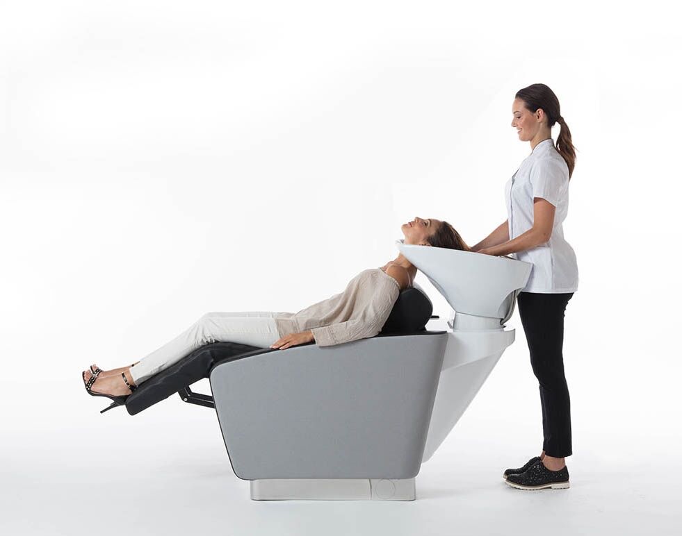 Miami Cloud is a new-generation shampoo backwash unit with pivoting sink basin and chair that combines high comfort and style in one complete wellness shampoo system for both the technician and the guest.