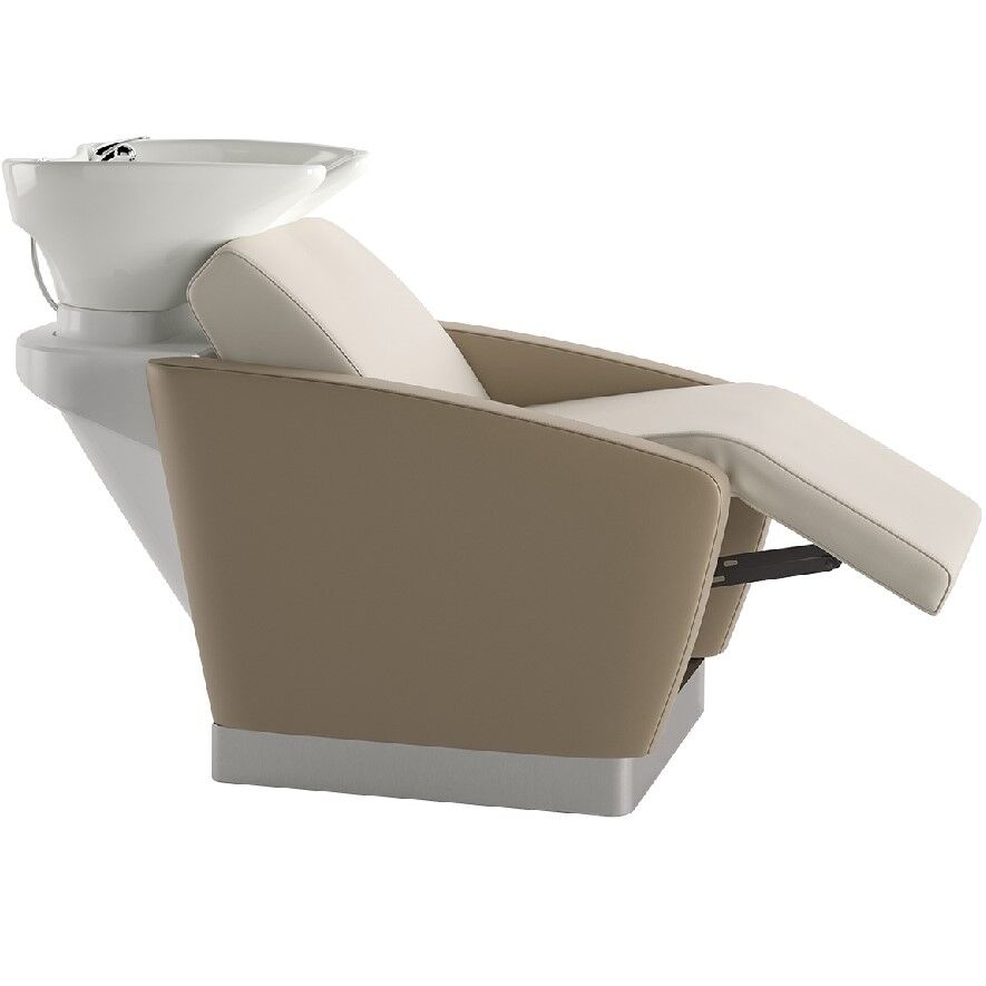 The synchronized movement of the seat, backrest, and motorized leg rest, allows the client a lay-down position with the best comfort level and maximum relaxation. It is particularly suggested for treatments and hair spa services. Quality performance is at the height of this shampoo unit with a steel inside structure and molded polyurethane foam padding for the chair and a heavy-duty steel structure to support the generously sized porcelain sink with chrome fittings at the workstation. Miami Cloud increases the level of wellness and client satisfaction. Rear cover of ABS acrylic. Made and ships from Italy, please allow 10 weeks for delivery.