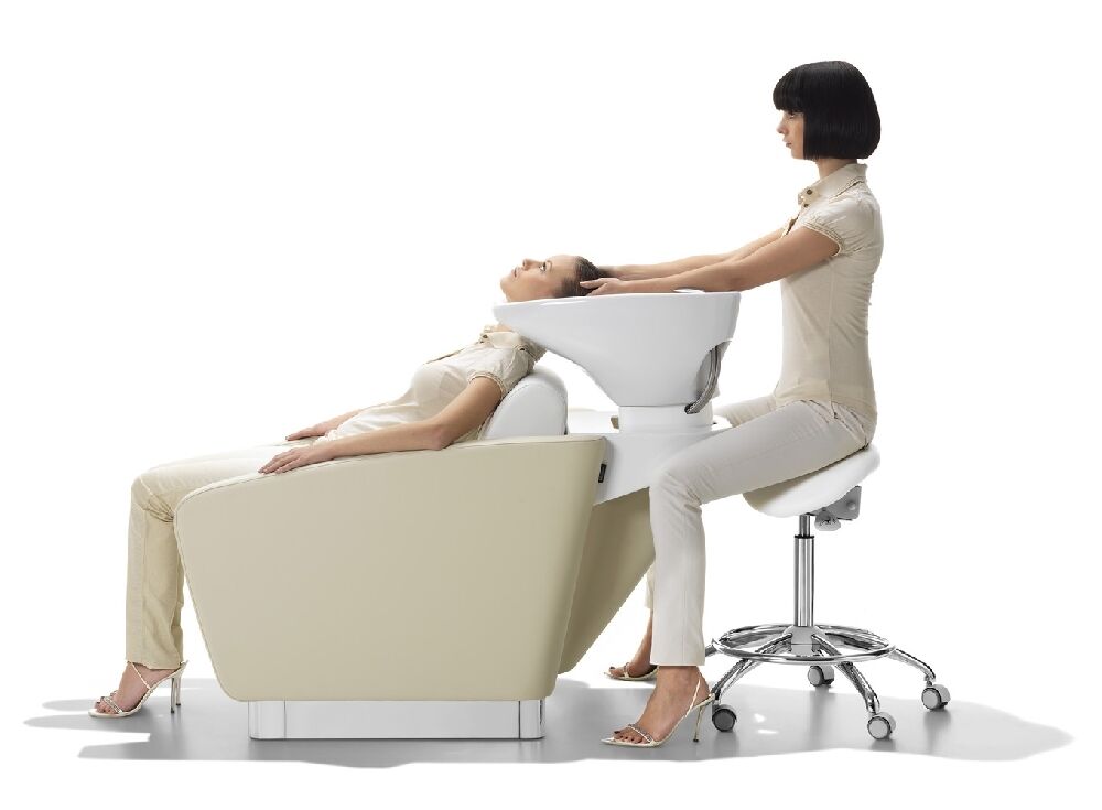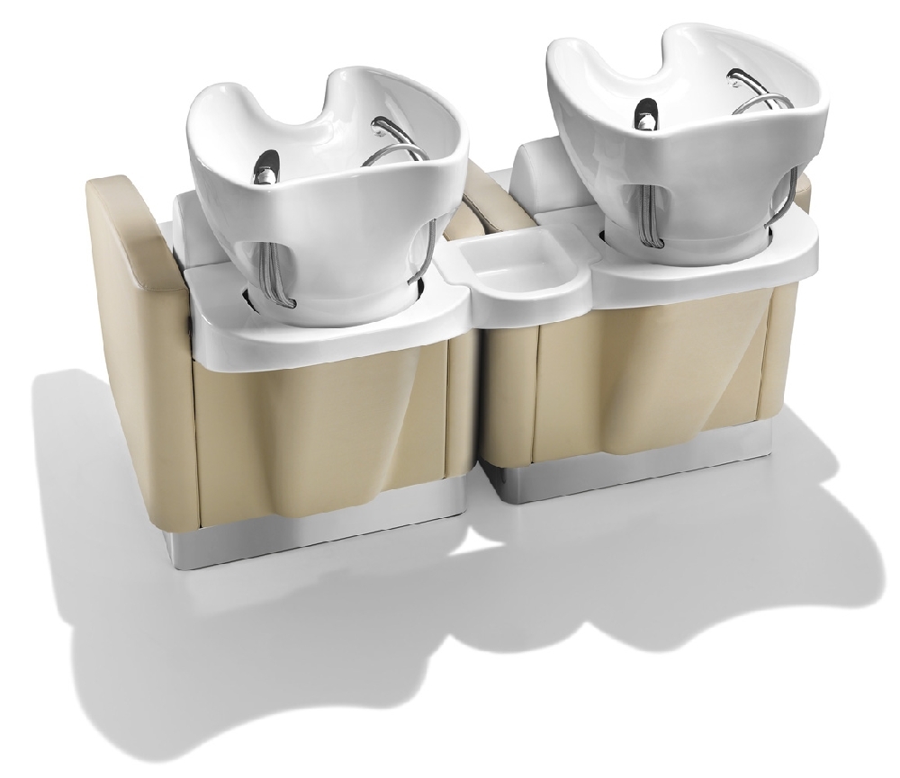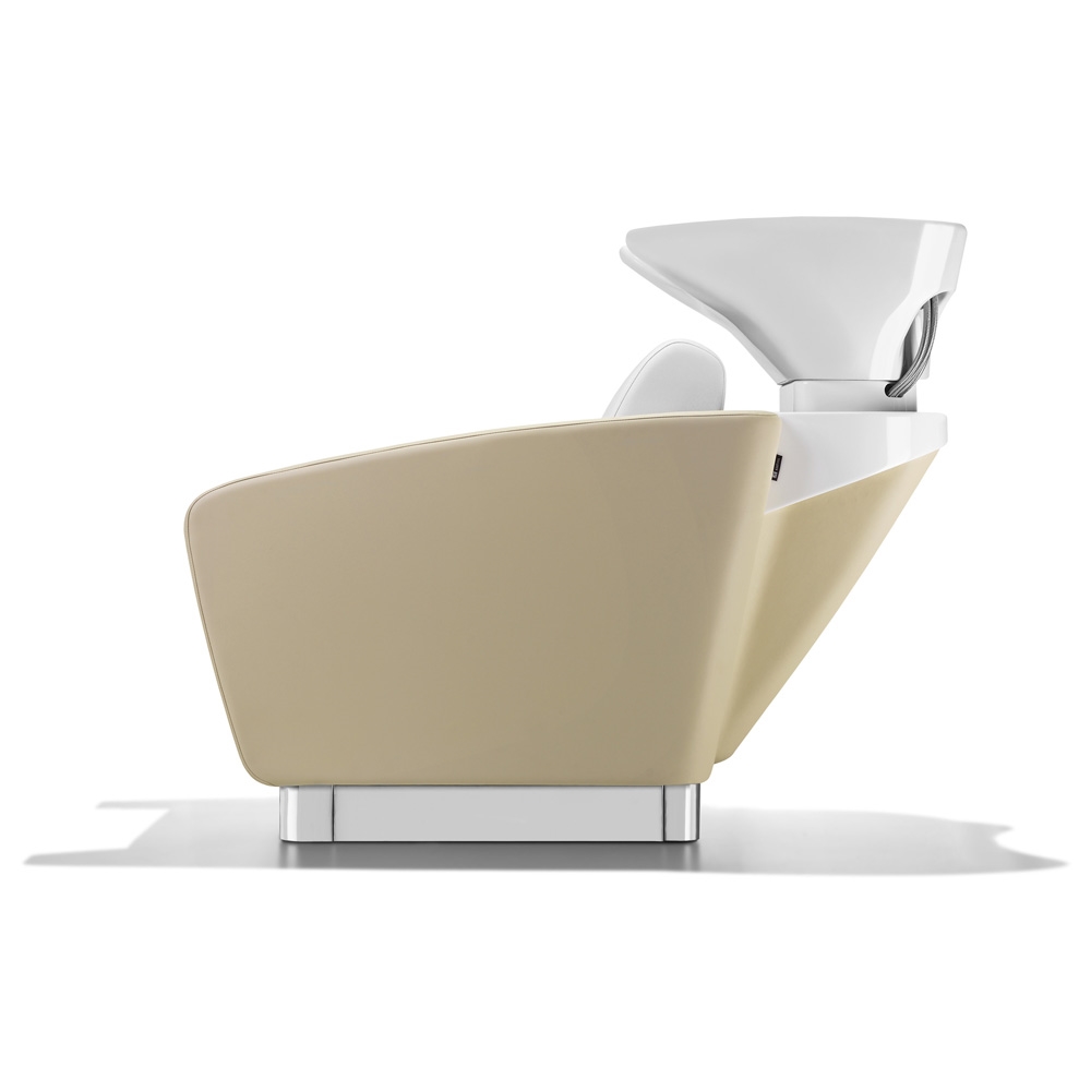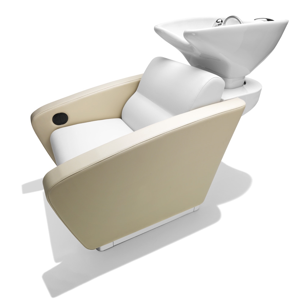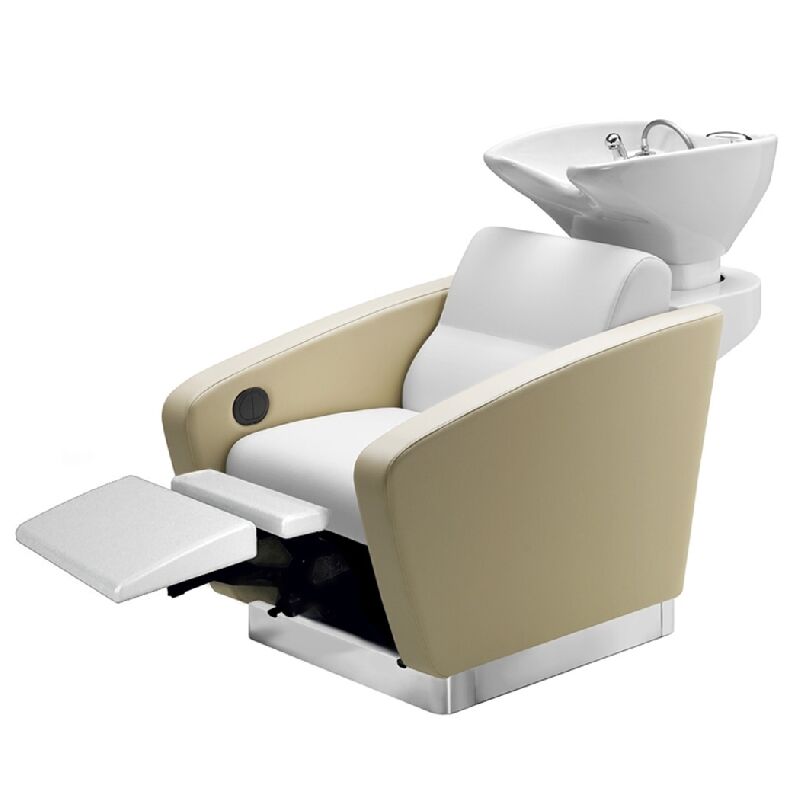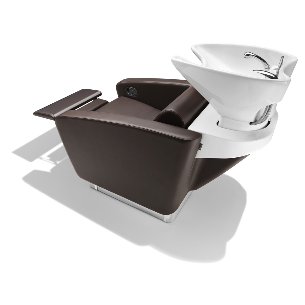 This luxury shampoo backwash unit with pivoting sink basin and chair combines high comfort and style in one complete wellness shampoo system for both the technician and guest. Quality performance is at the height of this shampoo unit with a steel inside structure and molded polyurethane foam padding for the chair and a heavy-duty steel structure to support the generously sized porcelain sink with chrome fittings at the work station. Rear cover of ABS acrylic. Made and ships from Italy, please allow 10 weeks for delivery.