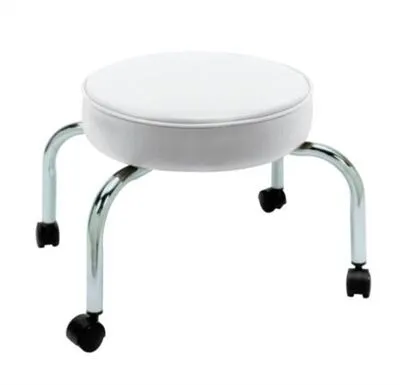 Mini pedicure Stool with round upholstered seat cushion in custom colors and chrome spider legs. Size: 13.5″w x 13.5″d x 14.5″h
