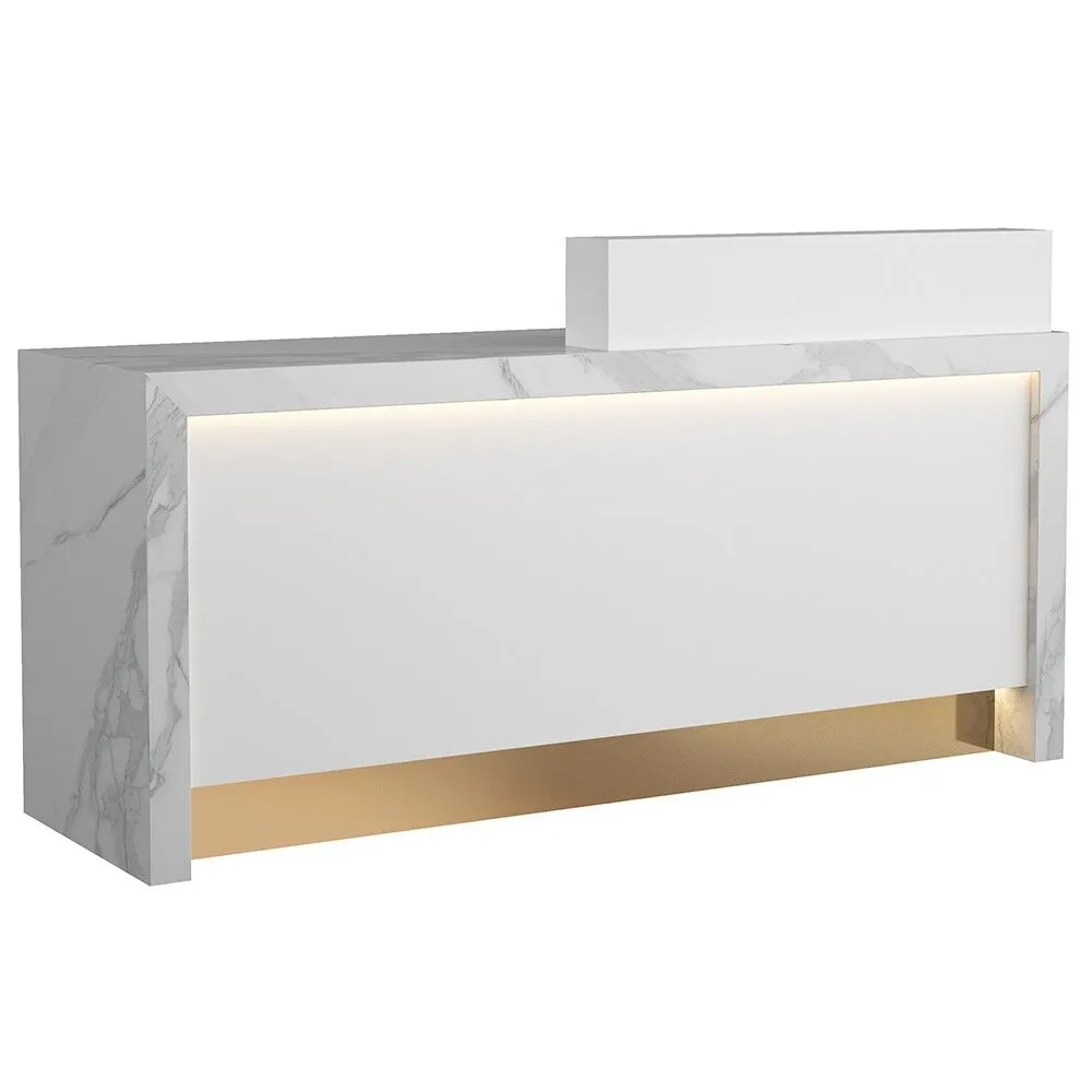 The Monofall ADA Reception Desk combines functional design with accessibility compliance, making it an ideal choice for modern office environments. This reception desk measures 78″W x 24″D x 34″H and includes an 8″ high privacy piece that provides subtle separation while maintaining an open, welcoming atmosphere. Designed by Michele Pelafas, the Monofall meets ADA requirements without compromising on style or workspace efficiency. The 24-inch depth offers adequate work surface for daily reception tasks, while the 34-inch height ensures comfortable interaction with visitors. The integrated privacy panel adds a professional touch while helping to organize the reception area. This desk works well in corporate offices, medical facilities, and professional service environments where accessibility standards are essential. The clean lines and thoughtful proportions make it suitable for various interior design schemes while maintaining the practical functionality needed in high-traffic reception areas.