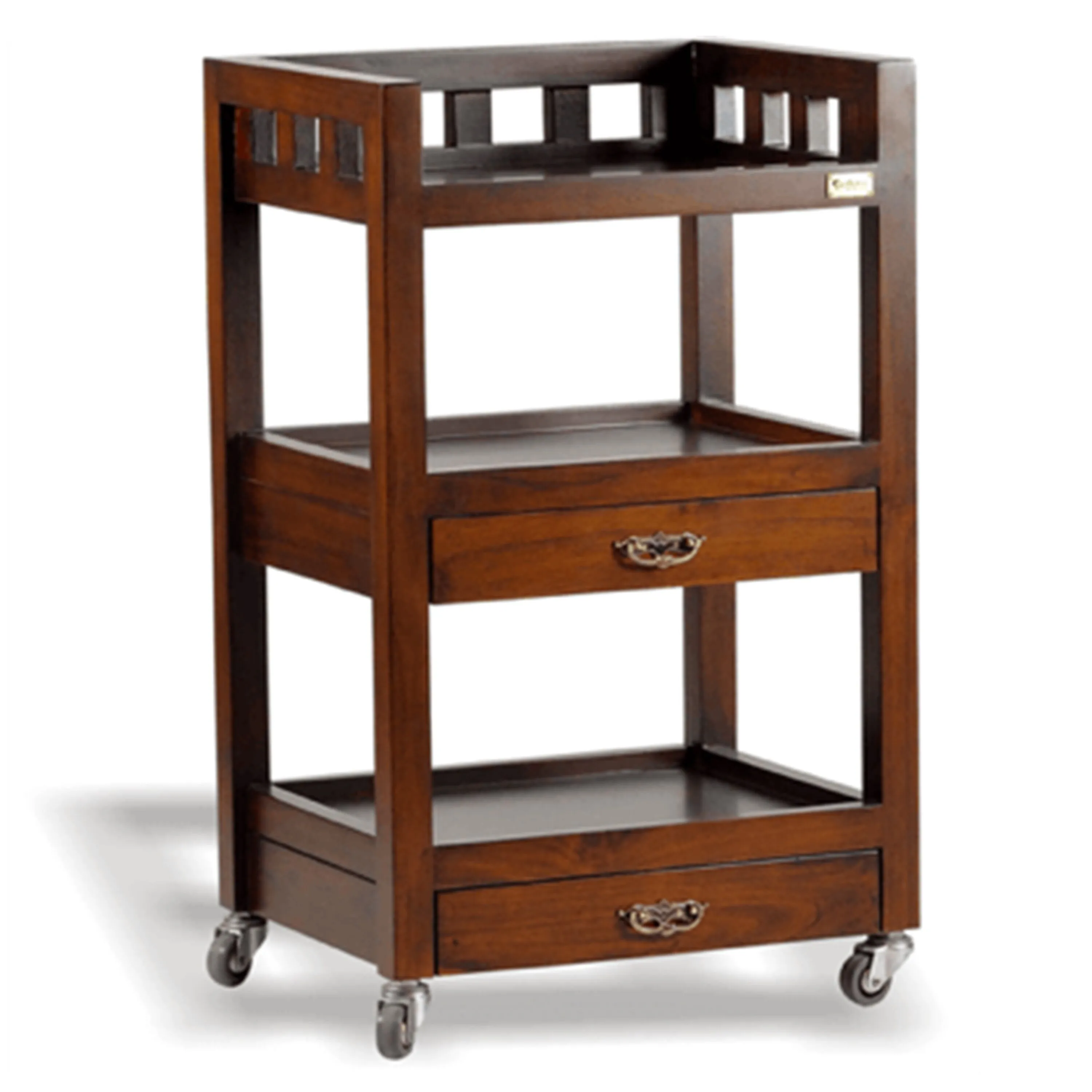 Mridula spa trolley has been manufactured with multiple storage options for a day spa. The top tray has been designed to store spa oils, creams and lotions. The open space beneath the top tray can hold face towels and then a decent size sliding drawer to store other spa essentials. The space at the bottom can be used to place an aroma oil burner. Manufactured with solid hardwood frame structure and decorative wood veneer, there are castor wheels for easy and noiseless movement.