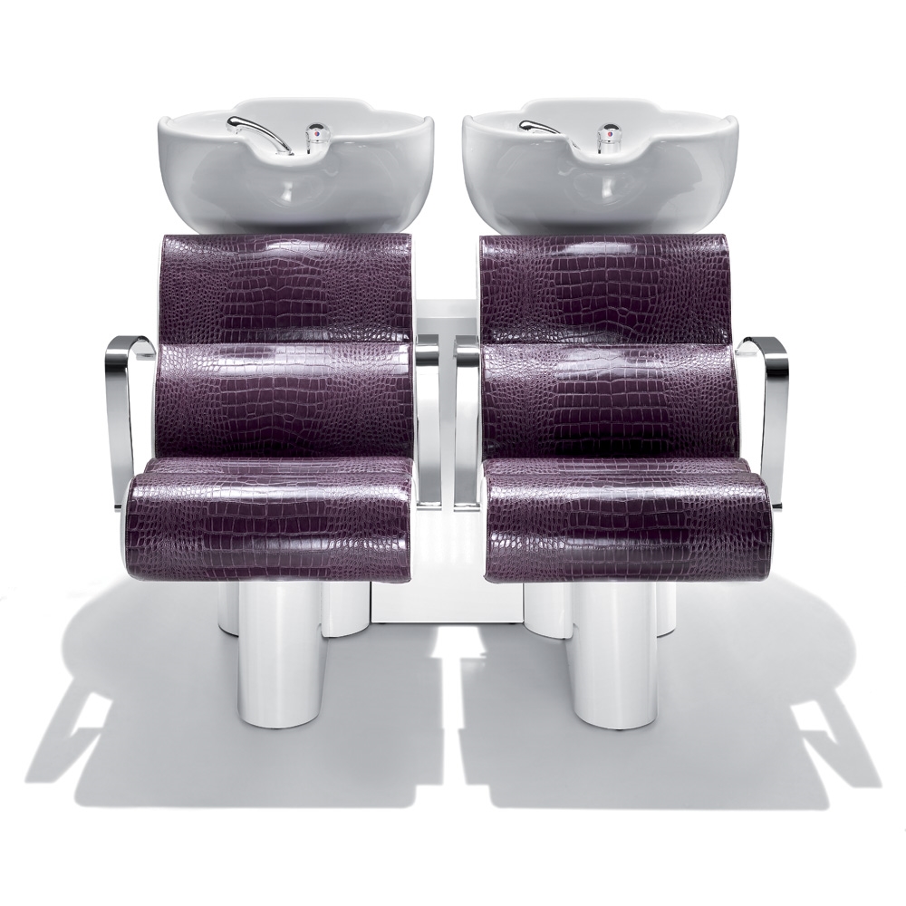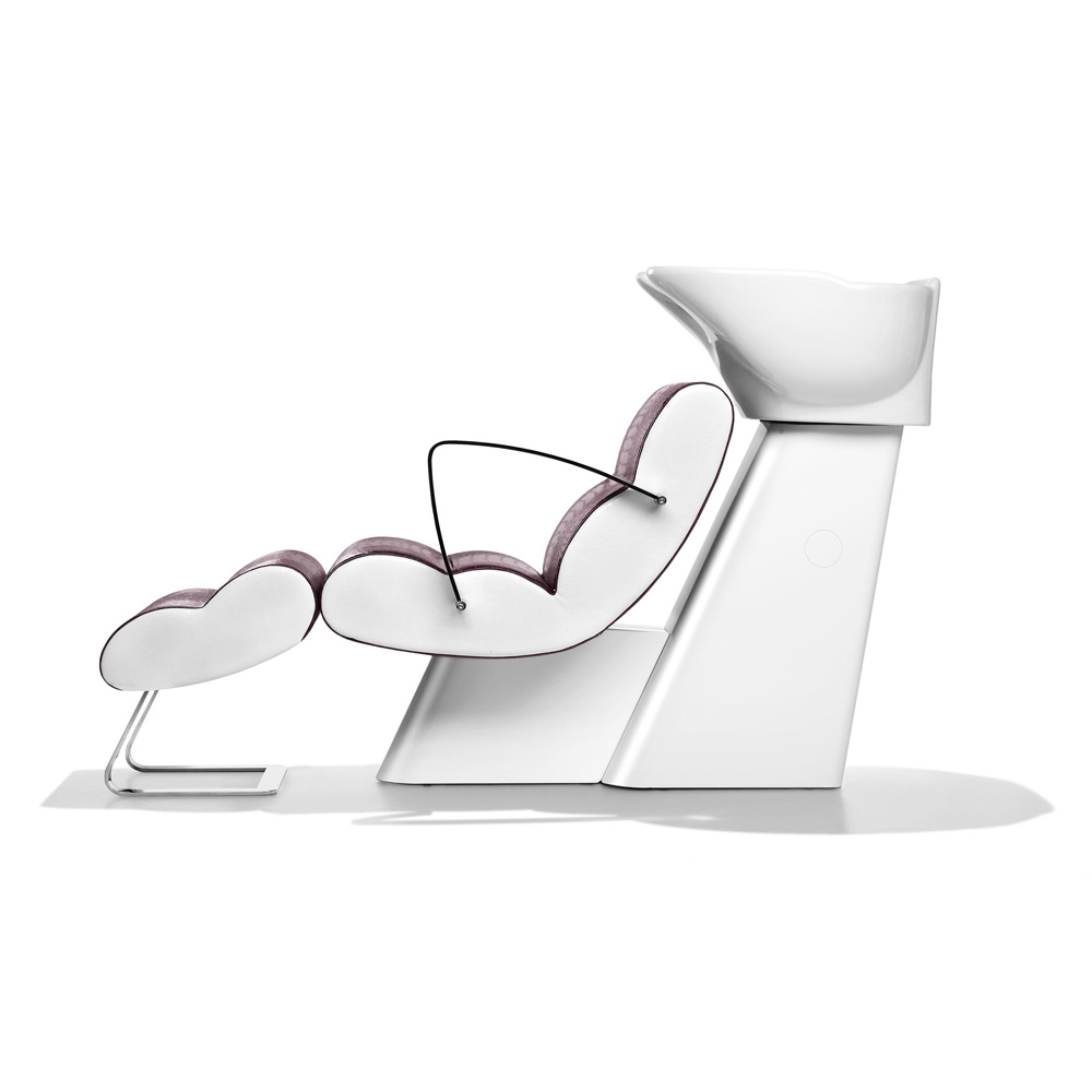 Enveloping and comfortable wash unit for both customer and hairdresser. Practical, comfortable and evergreen. Zinc-coated steel structure available in Dark Grey, White or Silver. Tilting ceramic basin. Foot Stool sold separately.
