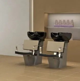 Enveloping and comfortable wash unit for both customer and hairdresser. Practical, comfortable. Zinc- coated steel structure and dust-painted available in dark grey, white or silver. Tilting ceramic basin. Includes your choice of vinyl upholstery, white basin with pedestal, and chrome fixtures. Made & shipped from Italy – Please allow 8 to 10 weeks for delivery.